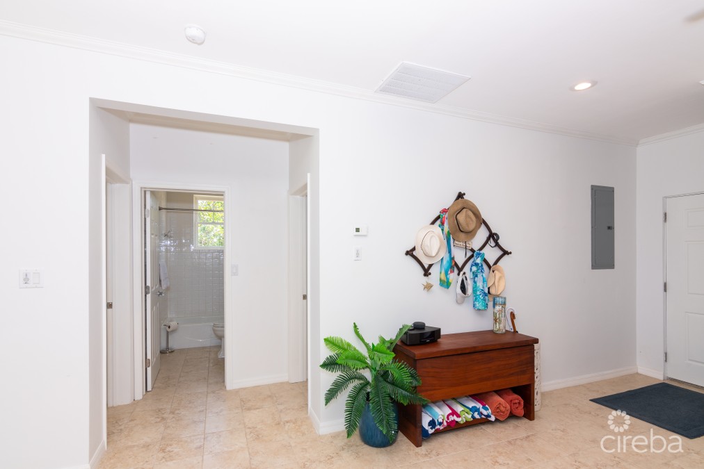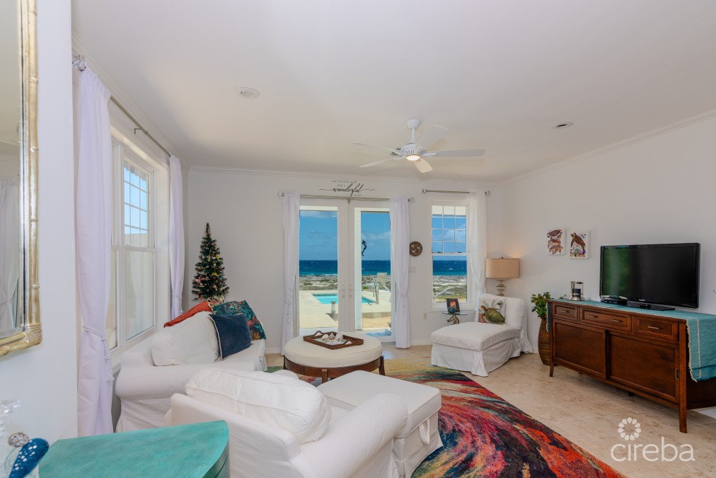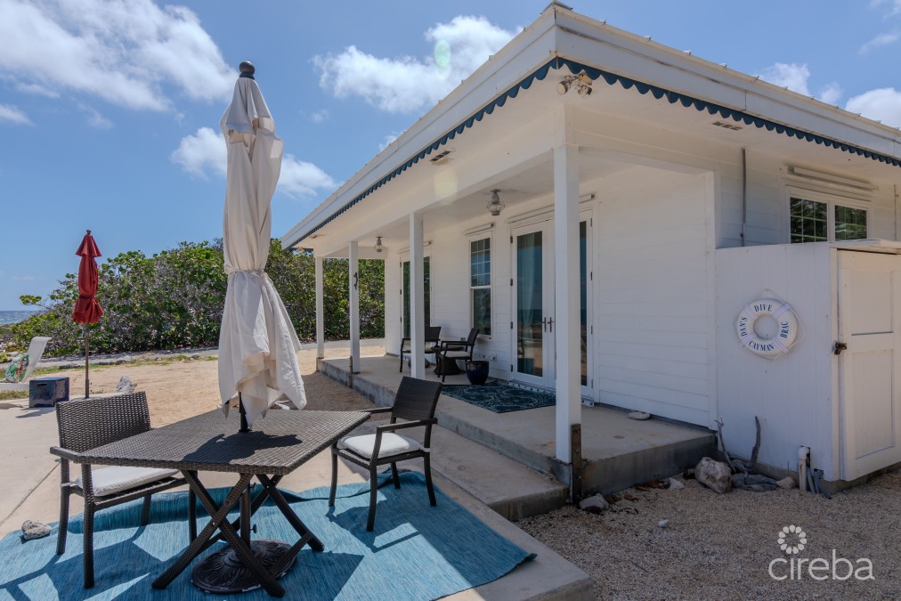This beautiful beach home is located on the very end of the North East side of Cayman Brac. Offering peace and tranquility with the ocean as your front view and the stunning Bluff in your back yard. This property rises approximately 11ft above sea level. The main house offers two bedrooms and one bathroom with a very spacious open plan living room and kitchen, central air conditioner and is 1,208 sq ft. Beautifully furnished with views of your private pool, sundeck and ocean. The studio apartment is next to the garage and offers 351 sq ft of 1 bedroom and 1 bathroom with mini split air conditioner. This home has much to offer whether you want a private home or vacation rental property. Property also has 2 cisterns totaling approximate 7000 gallons that can be used for irrigation.
