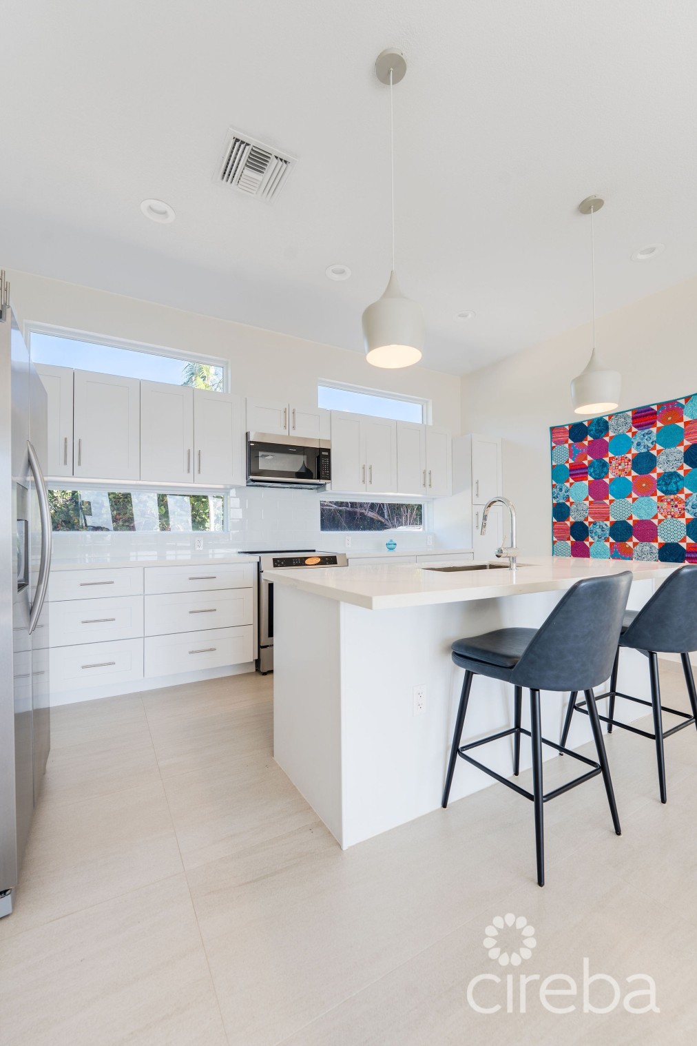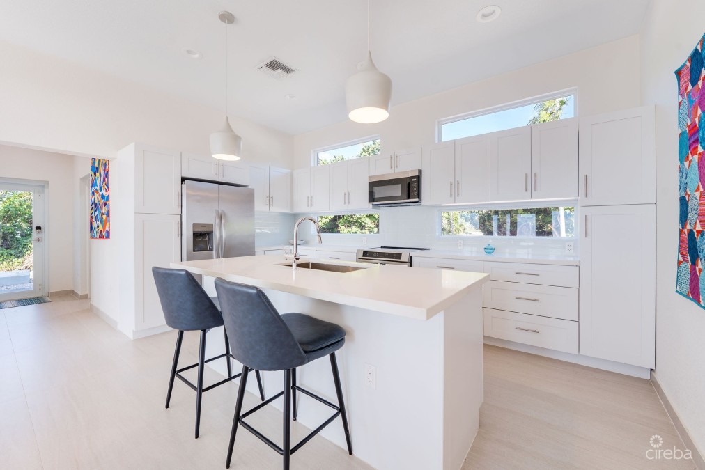 Step into effortless coastal luxury in this modern, almost-new Cayman Brac Southside seafront villa, offering 2,000 sq. ft. of thoughtfully designed living space on 0.84 acres of prime waterfront land. With 2 spacious bedrooms and 2 stylish bathrooms, this home is the perfect blend of relaxed island living and high-end modern comfort. Designed to maximize light and views, this villa features floor-to-ceiling impact resistant windows and sea views from every room, creating a seamless connection between indoors and out. The open-concept living, dining, and kitchen area flows onto a stunning, oversized covered patio – an ideal space for lounging, entertaining, or simply watching the waves. The sleek modern kitchen is fully equipped with high-end appliances, custom cabinetry, and premium finishes. Both bedrooms are generously sized, with ample storage, and the bathrooms are fitted with custom designed contemporary fixtures and quality materials, reinforcing the home’s luxurious feel. Outside, the expansive 0.84-acre lot offers privacy, space to add a pool, and plenty of room to create your dream tropical garden – all with the Caribbean Sea right at your doorstep. With its modern design, high-end furniture and appliances, turnkey condition, and uninterrupted sea views, this villa is perfect as a full-time residence, vacation home, or luxury rental investment.