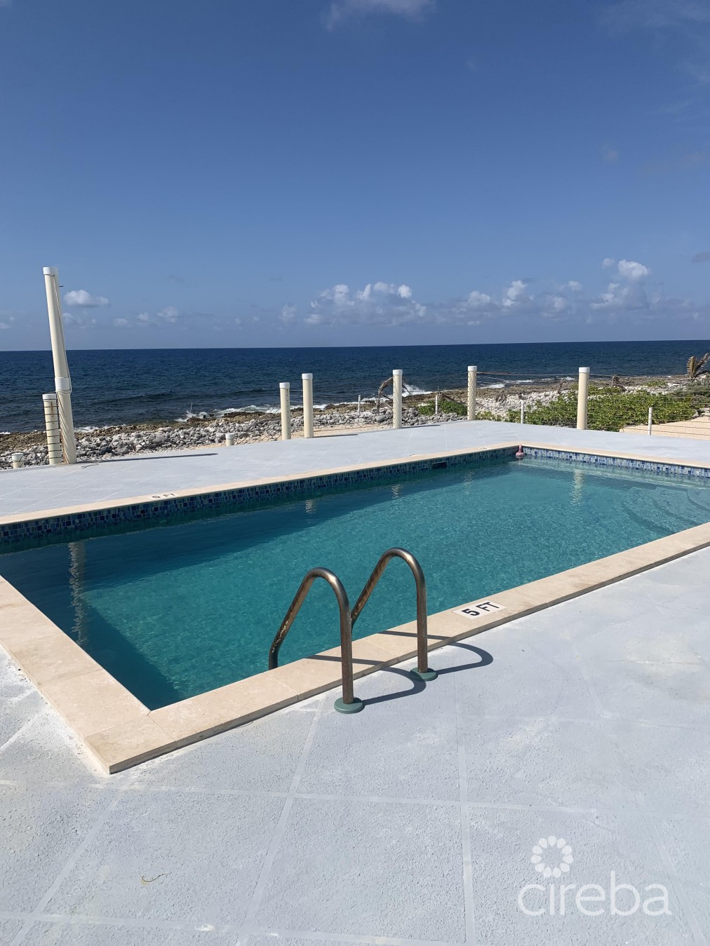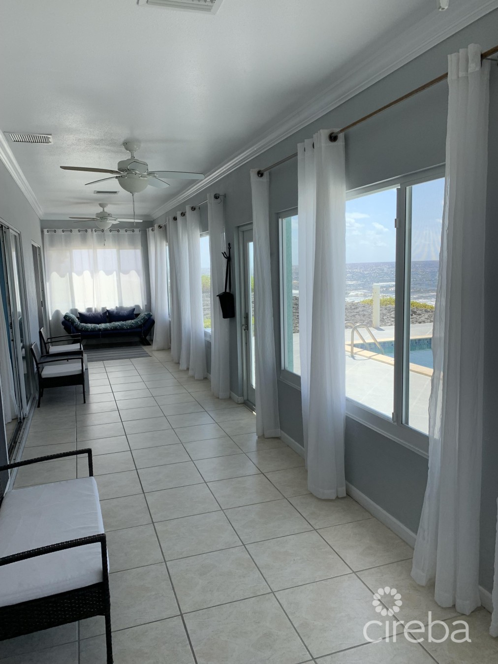 Oceanfront home with pool. This stunning 2 bedroom home is located on the South West end of Cayman Brac. The enclosed living space is approx. 1620 sq ft with an additional 1530sq ft pool deck. Beautiful enclosed porch area leading to the pool to enjoy the stunning ocean view. The home was renovated in 2009 and in 2016. Cistern is approximately 8000 gallons. The property is large enough for a garage or apartment to be added. The home is modern with open plan living spaces and separate utility room. This home is move in ready and a must see. It is also a very popular vacation rental and has great rental history.