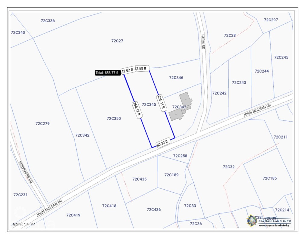 This great Residential Lot of 0.4539-acres located in East End community, Grand Cayman, offers a unique opportunity for those wishing to build their dream home in a tropical paradise setting. Located in a Medium Density Residential area is large enough to have all the potential to build a small condominium or a large Duplex / Triplex. The width and depth measurements are approximately: - Width: 80.32 feet - Depth: 256 feet on one side and 235 feet on the other. Strategic Location: Located a short distance from the stunning East End beaches, with easy access to restaurants, shops, and essential services. Nearby Amenities: • Beaches: Just 2 minutes by car or 14 minutes’ walk from beautiful white sandy beaches, ideal for relaxation, swimming, and water activities. • Dining: Close to a variety of restaurants offering local and international cuisine, allowing you to enjoy delicious meals with sea views. • Activities: Easy access to diving centers, snorkeling, and other recreational activities, making East End a sought-after destination for nature and adventure lovers. • Convenience: Shops, schools, and healthcare services are easily reachable, ensuring maximum convenience for residents. • East End Primary School: 1 minute drive or 4-minute walk • Health City Hospital: 5 minutes by car • Gas Station: 2 minutes by car Investment Opportunity: East End is one of the growing areas of Grand Cayman, with potential for property value appreciation, making this lot a smart choice for investors. Don't miss the chance to own a piece of paradise in East End, Grand Cayman. Contact us today for more information and to schedule an on-site visit. Your Real Estate Dream come True with us.