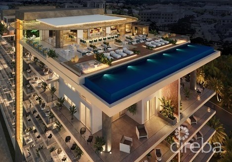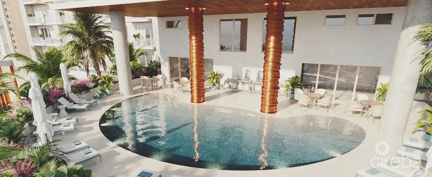 Tucked just behind Bayshore Mall on Goring Avenue in Central George Town, this ONE/GT residence puts you right in the middle of it all—while still feeling elevated (literally and lifestyle-wise). ONE/GT is set to become George Town’s first ten-story building, a true landmark in Central George Town. Designed for modern, convenience-first living, the development delivers premium, hotel-style amenities on-site, including an infinity-edge pool on the 11th floor, , private cabanas, a bar and grill, yoga and wellness spaces, full gym, a private residents’ entrance and pool, owner storage units, and covered valet parking. This one-bedroom plus den, one-bath home features a full kitchen, breakfast bar, comfortable lounge area, and a private balcony with stunning, pool, island and water views. To make ownership even more turnkey, the unit also offers a sunning furniture package with CI $30, 000.00 cash back!