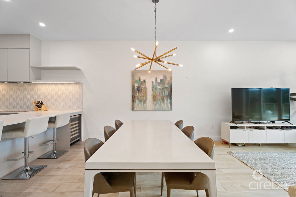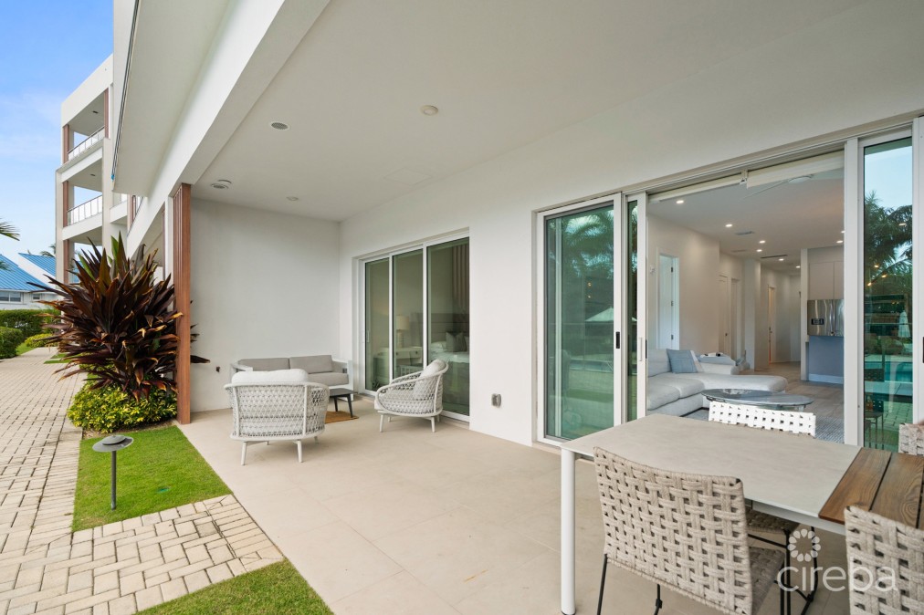 Experience modern oceanfront living at this ground-floor 3-bedroom condo at Aura. This exceptional 3-bedroom, 3-bathroom ground-floor residence at Aura offers 1,865 sq. ft. of thoughtfully designed, energy-efficient living in a modern oceanfront community minutes from Grand Harbour and George Town. Privately positioned with direct views over the pool, the condo combines space, privacy, and convenient access to amenities. The home features a functional open-plan layout with generous living and dining areas, three spacious ensuite bedrooms, and abundant natural light throughout. Interiors are tastefully furnished with Anna Hislop designer pieces and finished with high-quality materials, ample built-in storage, and clean contemporary lines. A full laundry room with additional storage enhances everyday practicality, while efficient utilities help keep running costs low. This unit has 15 dedicated solar panels. A large private patio extends the living space outdoors, ideal for entertaining or relaxing, with easy access to the pool area. The ground-floor position provides a seamless indoor–outdoor flow rarely available in condo living. Residents enjoy access to two swimming pools (lap and resort-style), a fully equipped gym, children’s playground, and direct waterfront access for paddleboarding and snorkeling. Walking distance to Grand Harbour and Harbour Walk, with nearby restaurants, shopping, fitness studios, schools, and Cayman’s business district, this property is well suited as a full-time residence, holiday home, or investment opportunity. The perfect balance between modern comfort and island ease. Your home is waiting for you..