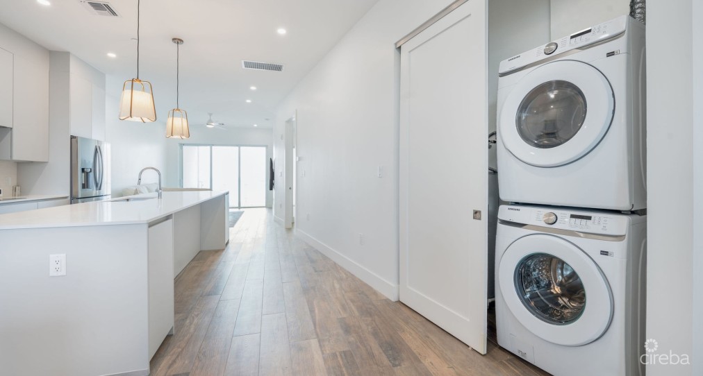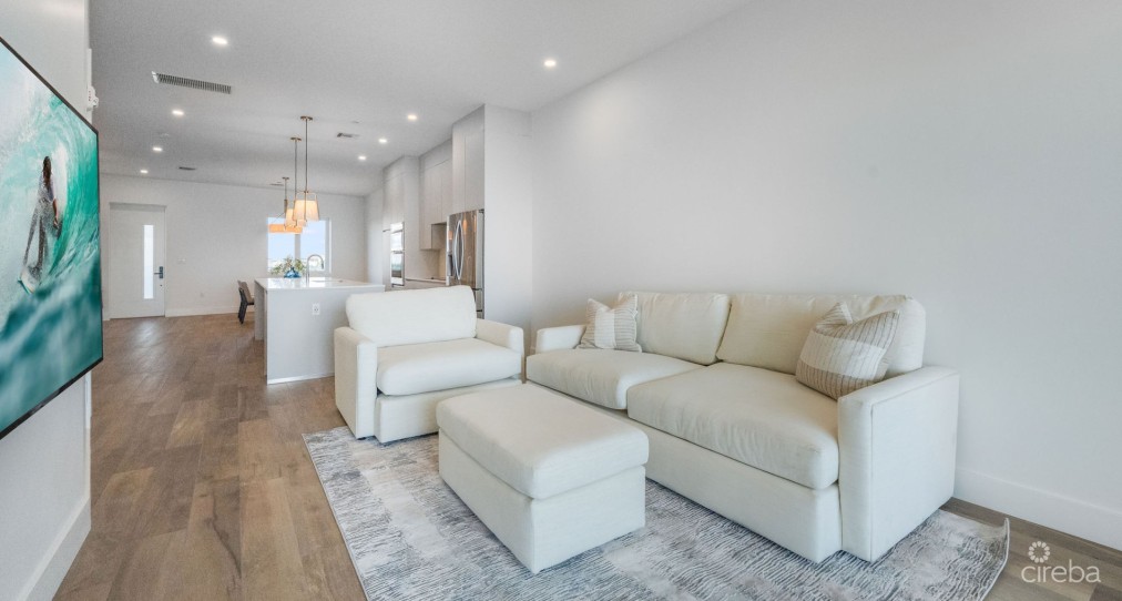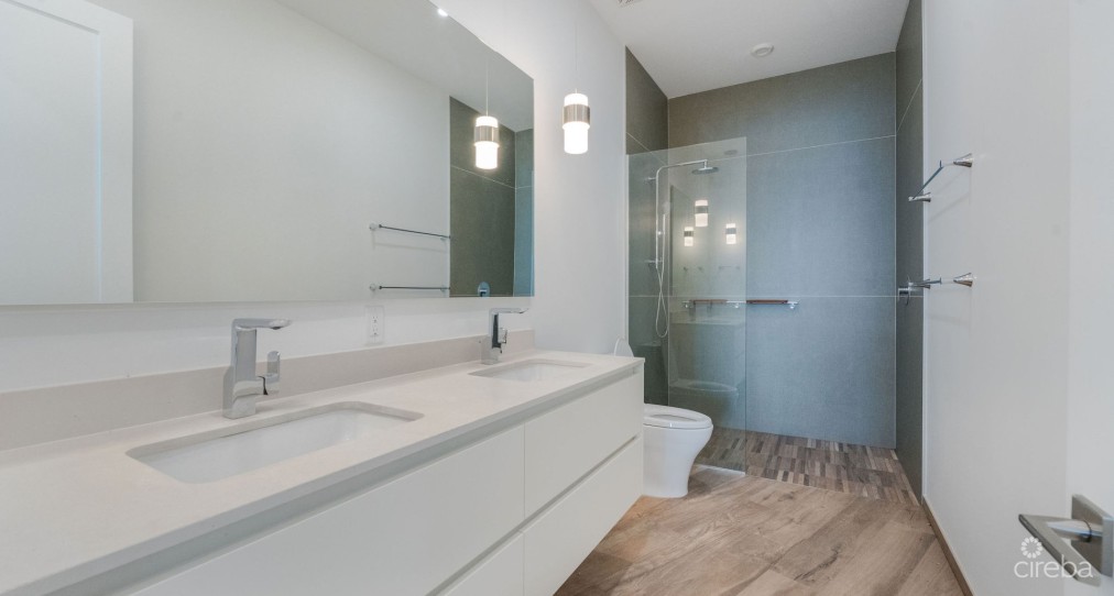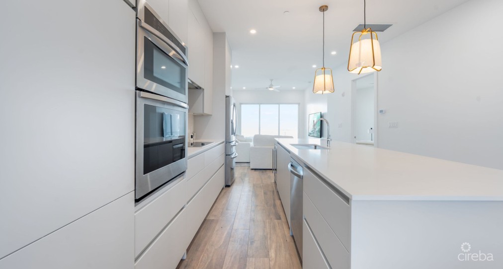 EXCEPTIONAL OPPORTUNITY! Uninhabited and pristine!! This residence presents an opulent, newly constructed lifestyle in the scenic South Sound region. It boasts a breathtaking fourth floor, fully furnished 2-bedroom, 2.5-bath condominium with remarkable ocean vistas overlooking the bay. The modern design is elegantly adorned, ensuring a seamless move-in experience. The complex features outstanding amenities including a 60-foot circular pool, a 75-foot lap pool, verdant gardens, a private cove, outdoor barbecue facilities, a gym and kitchen area, as well as a children's play area. Relish the soothing ocean breezes and the charm of this enchanting locale.