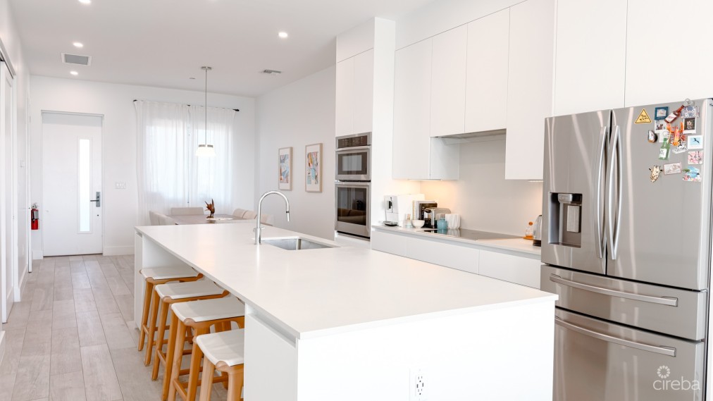 Modern Oceanfront Living, Oceanfront 2 Bedroom Townhouse Style Condo at Aura, Grand Cayman Step into island sophistication with this exceptional 2-bedroom plus office townhouse style condo at Aura, a newly developed oceanfront community just minutes from Grand Harbour and George Town. Top-Floor Privacy with Ocean Views Perfectly positioned with incredible oceanviews from the third and top floor, this privately situated condo offers a rare combination of space, privacy, and direct access to resort-style amenities, all in a family-oriented setting. Contemporary Interiors with Functional Design Designed for modern energy efficient living, this residence features 2 generously sized bedrooms, each with its own ensuite bathroom, and an additional den/office/playroom providing comfort and privacy for every member of the household. The interiors are flooded with natural light and elegantly furnished with Anna Hislop designer pieces, offering a calm, contemporary aesthetic throughout. The layout is functional yet stylish, with ample storage, open-plan living and dining areas, and high-quality finishes that elevate every room. Resort-Style Amenities and Waterfront Access Aura is more than just a place to live,it’s a lifestyle. Residents enjoy two swimming pools (a lap pool and a large resort-style pool), a fully equipped gym, children’s playground, and direct access to the calm waters of the bay, perfect for paddleboarding or snorkeling. For beach access, Smith Cove and Spotts Beach are just minutes away. Prime Location Near Grand Harbour Located within walking distance to Grand Harbour and Harbour Walk, everything you need is close by from restaurants and cafés to fitness studios, shopping, and services. The proximity to schools and Cayman’s business district makes this property especially ideal for families or professionals seeking convenience. Versatile for Residence, Holiday, or Investment Whether you're looking for a full-time residence, vacation home, or investment opportunity, this 2-bedroom townhouse in Aura offers tremendous value and appeal. The combination of oceanfront living, premium amenities, and modern design makes this one of the most attractive listings in today’s market. Visionary Living in a Waterfront Community Don’t miss the chance to be part of one of Cayman’s newest waterfront communities that is designed for comfort, built with vision, and created for those who value both beauty and functionality. Call today for your private tour and experience the unique lifestyle Aura has to offer. How do you want to live your life?