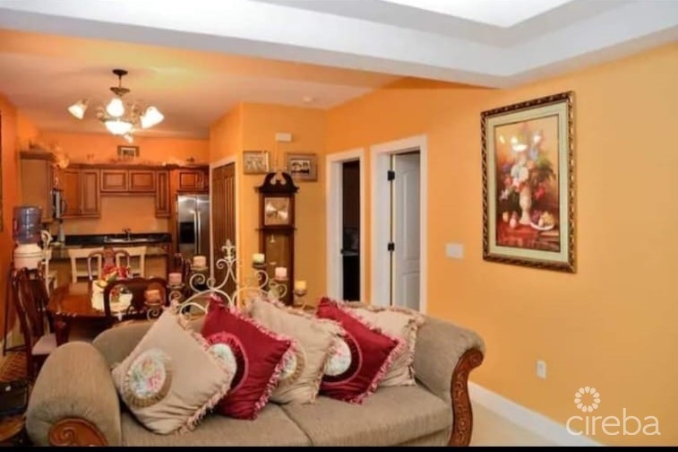 Introducing this exquisite fully furnished 2 bedroom, 2 bathroom condo, located in a highly sought-after community. This MLS listing offers a perfect blend of comfort and convenience. Step inside and be greeted by a tastefully decorated living space. The open concept design seamlessly connects the living, dining, and kitchen areas, creating a spacious and inviting atmosphere. The two bedrooms provide ample space for relaxation and privacy, with each room featuring its own bathroom for added convenience. This condo complex offers an array of amenities that cater to your active lifestyle. Take advantage of the on-site tennis court, perfect for friendly matches or honing your skills. Cool off on hot summer days in one of the pools, or maintain your fitness routine in the well-equipped gym. The grounds of this community are meticulously maintained, showcasing superb landscaping and creating a serene and picturesque environment. Enjoy leisurely walks or find a peaceful spot to unwind and soak in the beauty of your surroundings. Conveniently located approximately 5 minutes from the Grand Harbour Shopping Center and Hurley's Supermarket, you'll have easy access to a variety of shopping and dining options. The vibrant city of George Town is just a short 10-minute drive away, offering a bustling atmosphere and a range of amenities. Don't miss the opportunity to own this exceptional fully furnished condo with its fantastic amenities and prime location. Contact us today to schedule a viewing and make this your new home in paradise.