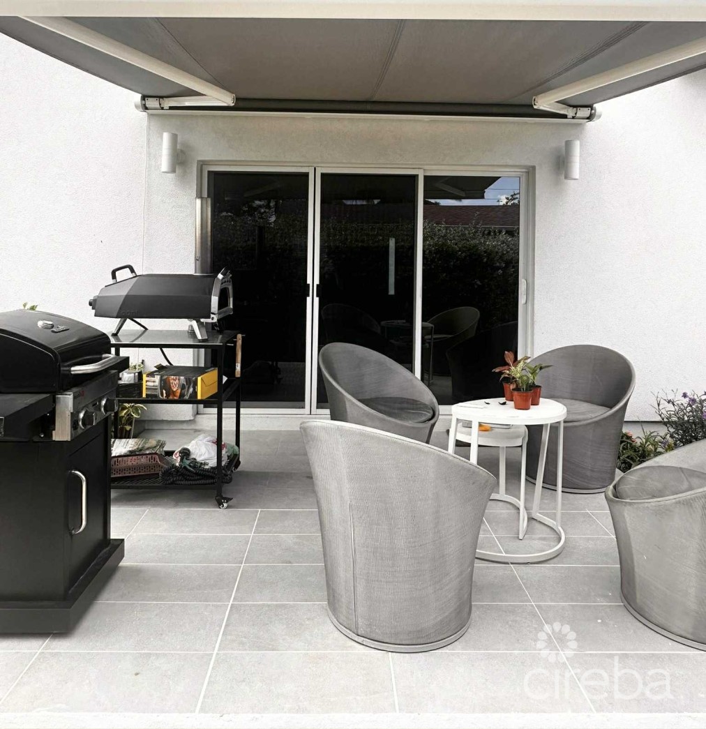 Charming Duplex 3 bedroom 3.5 bathroom in Red Bay. Modern Island Retreat with Custom Finishes. Discover the perfect blend of comfort, style, and luxury in this beautifully upgraded 3-bedroom, 3.5-bathroom family home. Spanning 1,600 sq. ft., this move-in-ready residence is designed for both relaxation and entertaining. As you step inside, you'll find a bright, open-plan living area that flows into an upgraded kitchen. The kitchen is a chef's dream, featuring quartz countertops, an oven, a microwave, and a large island perfect for family gatherings. High ceilings and abundant natural light create a warm and inviting atmosphere throughout the home. Convenience is key with a separate, spacious laundry room and a stylish half bathroom with unique, custom wallpaper and patterned tiles. Each of the three bedrooms is a personalized retreat, with custom window treatments and unique design touches. The luxurious master bedroom suite boasts a spa-like bathroom with palm-leaf tiles and a natural pebblestone shower floor. The second bedroom offers a tranquil ambiance and a private en-suite bathroom with sleek, modern soft blue tiles arranged in a stylish arch pattern. The third bedroom is perfect for a child or guest, with a floor-to-ceiling slab of natural dark green stone with striking veining, a custom floor of smooth river stones, and a modern rainfall showerhead. Your Private Outdoor Oasis, step outside to an extended backyard patio designed for ultimate outdoor living. It features an electrical sun sail shade, it has BBQ and pizza oven, and comfortable outdoor furniture—with a sparkling community swimming pool. This is your private sanctuary, perfect for entertaining guests or simply unwinding after a long day. Unbeatable Location This stunning home is ideally located near Hurley's Supermarket, Harbour Walk (restaurants and bars), and top schools, with easy access to George Town. You get the perfect combination of convenience and tranquillity. Property Highlights: 1,600 sq. ft. (148.64 sq. m.) | 3 Bedrooms | 3.5 Bathrooms Custom window treatments in every room, each with a unique touch High-quality furniture included Luxurious master bath and two additional unique bathrooms Private backyard with BBQ, and pizza oven with community swimming pool. High ceilings and abundant natural light Don’t miss your chance to make this exceptional property your new home.