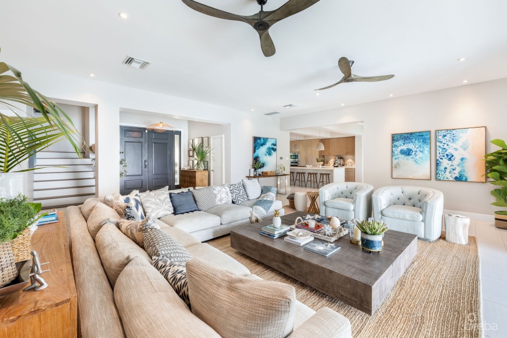 Discover the epitome of coastal luxury with this meticulously crafted property featuring a stunning home with a separate private guest cottage. Seamlessly blending contemporary elegance, thoughtful design, and a prime waterfront location, this home is the ultimate island retreat. From the moment you arrive, you’re captivated by the mesmerizing views, where the infinity-edge pool merges with the brilliant blues of the Caribbean Sea and sky. Designed for seamless indoor-outdoor living, the property boasts multiple AC zones and expansive spaces ideal for entertaining or enjoying the tranquil tropical surroundings. The main house offers six spacious bedrooms and five and a half bathrooms, including two large bedrooms conveniently located on the ground floor. A true chef’s dream, the gourmet kitchen features premium Thermidor appliances, including a gas range and stove, and a dining area that accommodates up to 10 guests with ease. Functional elegance extends to the dedicated laundry room, pantry, and utility area, ensuring a home that’s both beautiful and practical. Upstairs, the second-floor features four en-suite bedrooms and a spacious den outfitted with an 85-inch Samsung TV and Sonos sound system, perfect for relaxing movie nights or gatherings. The master suite is a sanctuary unto itself, complete with a luxurious rain shower, a freestanding tub overlooking serene ocean vistas, and custom-designed finishes that enhance the atmosphere of sophistication. Warm engineered hardwood floors, curated art installations and a HVAC scenting system add a touch of timeless elegance throughout. Ideal for visiting guests or rental opportunities, the guest cottage includes one bedroom, one bathroom, and a well-appointed kitchenette, with a private entrance to ensure comfort and seclusion. Step outside to a tropical paradise where the infinity-edge pool seamlessly merges with breathtaking ocean views. The outdoor spaces are equally impressive, featuring a firepit lounge, plans for a private dock (design complete and submitted to Planning) with paddleboard and kayak storage, and lush mature landscaping adorned with swaying coconut palms for privacy and beauty. Thoughtful features such as hurricane-rated windows and doors, electronic shutters, and a 12+ ft elevation provide both security and peace of mind. This property boasts state-of-the-art indoor and outdoor sound systems, multiple TVs, and ample seating areas designed for gatherings both inside and out. Built with hurricane-rated construction, including a durable standing seam roof, it offers security and peace of mind. Newly installed wizard screens enhance the seamless transition between indoor and outdoor living, further elevating the home’s comfort and functionality. Located just steps from Kaibo restaurant, bar, and coffee shop, and offering direct access to a pristine white sandy beach, this home delivers the best of island living. Whether you’re seeking a short-term rental investment or a forever family home, this property’s exceptional craftsmanship and attention to detail make it a truly unique offering. Relax, entertain, and create lasting memories here - where every element has been thoughtfully designed to elevate your living experience.