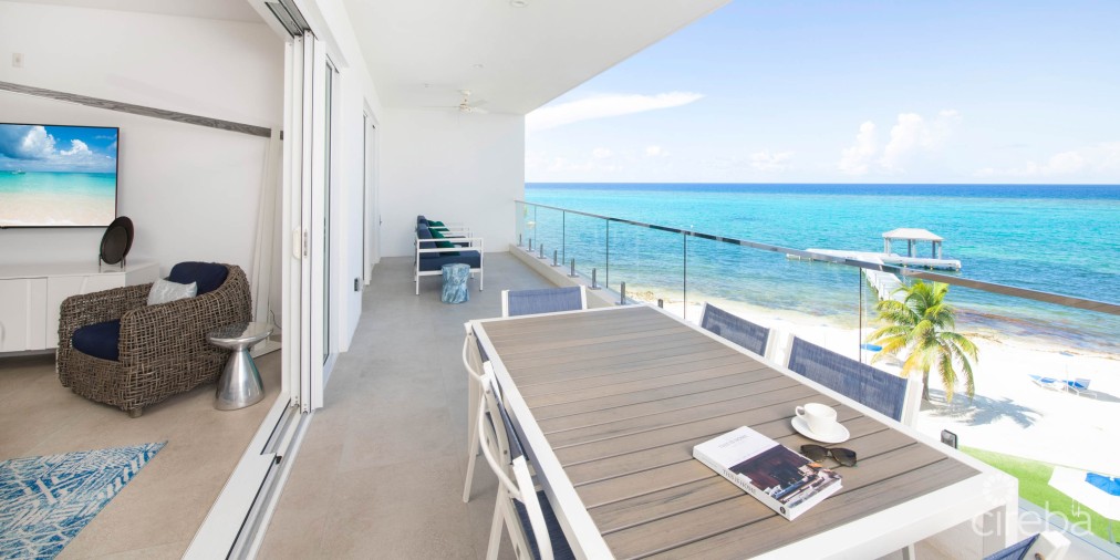 Welcome to this stunning 3-bedroom, 3.5-bathroom condo at Rum Point Resort, offering 2,250 sq. ft. of sleek finishes, designer décor, and unobstructed ocean views. This spacious, open-concept layout maximizes natural light and indoor-outdoor island living. Step onto your private oceanfront balcony and take in breathtaking views of the Caribbean Sea. Inside, the condo features a gourmet kitchen equipped with Thermador appliances, quartz countertops, and a kitchen island with breakfast bar seating. The living area includes comfortable seating, SmartTV, and direct access to the balcony, perfect for relaxing or entertaining. The formal dining area seats six, with an additional outdoor dining table for al fresco dining. The primary suite offers a king bed, private balcony access, and a luxurious ensuite with a soaking tub and walk-in shower. Two guest suites feature king and queen beds, SmartTVs, and private ensuite bathrooms. Operating as a resort, this unit is managed within a short-term rental pool with fantastic onsite management. Resort amenities include 500 feet of protected beachfront with daily beach service, a heated infinity pool with submerged loungers, and a private dock with snorkeling access. Enjoy the rooftop Owner’s Terrace with 270-degree sunset views, a fitness center, and a wellness suite for spa treatments. Dining options range from a lobby bar and restaurant to private chef services. Additional perks include complimentary bikes, snorkel gear, and more. Located on Cayman’s quiet side, Rum Point Resort offers a tranquil escape while being just minutes from Kaibo, Camana Bay, and the newly refurbished Rum Point Club. Whether you’re looking for a luxury vacation rental or a year-round residence, this condo is move-in ready and turnkey for short-term rental potential. Contact us today to discuss this slice of paradise.