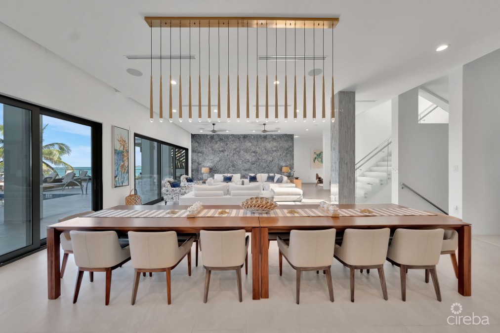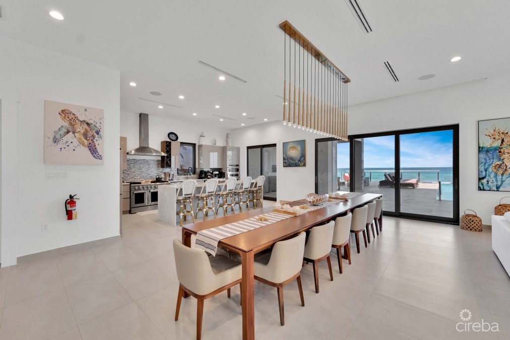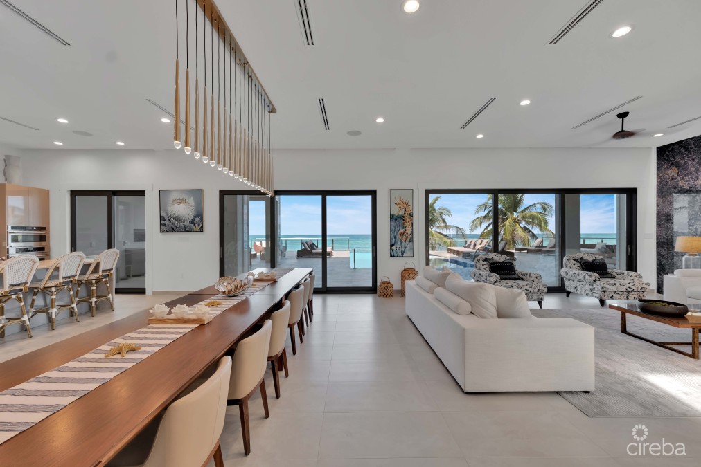 WELCOME HOME TO YOUR BEACHFRONT PARADISE ! https://discover.matterport.com/space/WajBnfYdXfw Discover coastal sophistication and luxurious living in this extraordinary property located on the prestigious Rum Point Drive. More than just a home, this beachfront masterpiece offers an unparalleled lifestyle, blending superior craftsmanship with opulence against the backdrop of the stunning Cayman coastline. This newly constructed, fully furnished smart home spans an impressive 15,000 square feet, boasting 11 bedrooms and 13 bathrooms, each meticulously designed with custom features that balance comfort and luxury. Upon entering through the grand front doors, you’ll be greeted by breathtaking panoramic views of the Caribbean Sea framed by magnificent glass walls. The open-concept layout is elevated by soaring 11-foot ceilings and a striking blue granite feature wall, creating a seamless flow from the elegant dining area to the expansive living spaces. The master suite is a private sanctuary, complete with a spa-inspired ensuite bathroom and a covered outdoor seating area. Relax here as you take in views of the infinity-edge pool and the mesmerizing Caribbean beyond. This home is designed to meet every need for luxurious living. Highlights include: • A fully equipped gym • A 17-seat private home theater • A well-appointed game room • An elevator for easy access to all floors The gourmet kosher kitchen features top-of-the-line appliances, quartz countertops, and a full butler’s pantry. For those who enjoy alfresco dining, the outdoor kitchen, equipped with professional-grade appliances, ensures unforgettable dining experiences. Standing 18 feet above sea level, this three-story residence incorporates sustainable design elements, including solar panels, LED lighting, and a seven-zone air conditioning system. Safety and convenience are paramount, with a comprehensive security system, hurricane shutters, and gigabit-speed internet. Additional features include: • A sauna and yoga room • Laundry rooms on each floor • A 60-gallon cistern and a 100kW generator This exquisite beachfront estate redefines luxury, combining comfort, technology, and elegance to create the ultimate tropical sanctuary. This property also presents an exceptional investment opportunity, generating impressive rental income through its presence on multiple international platforms. Whether you’re seeking a profitable venture or a chance to enjoy paradise while earning, this is the ideal choice.