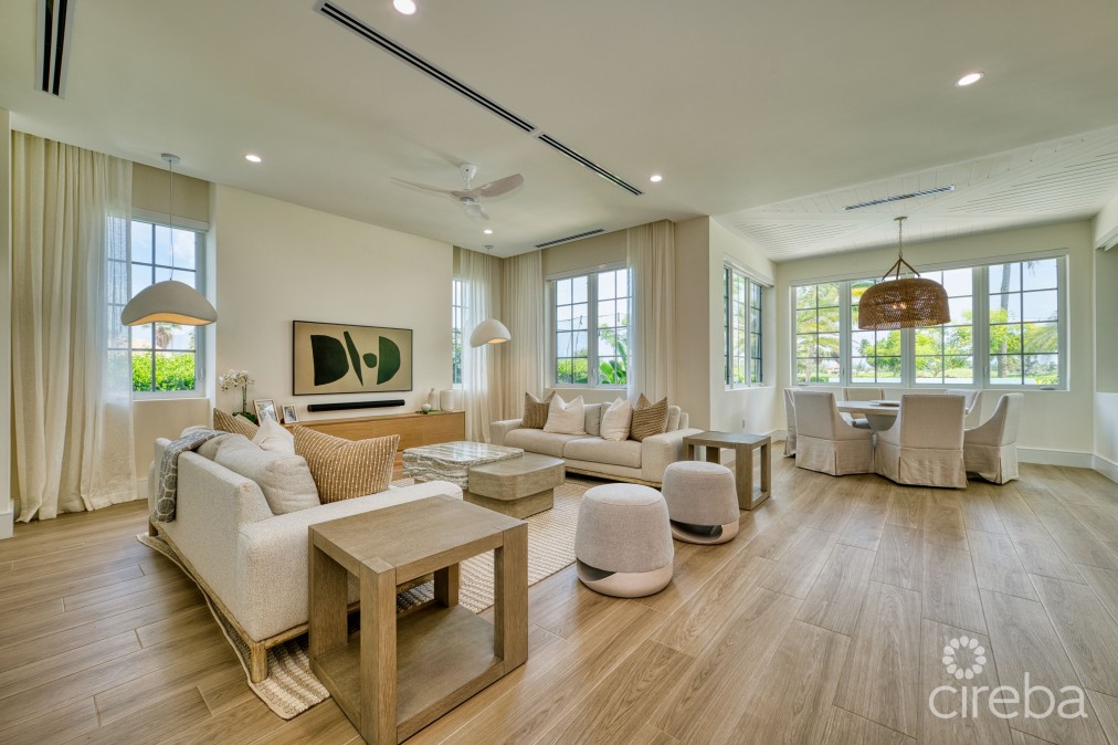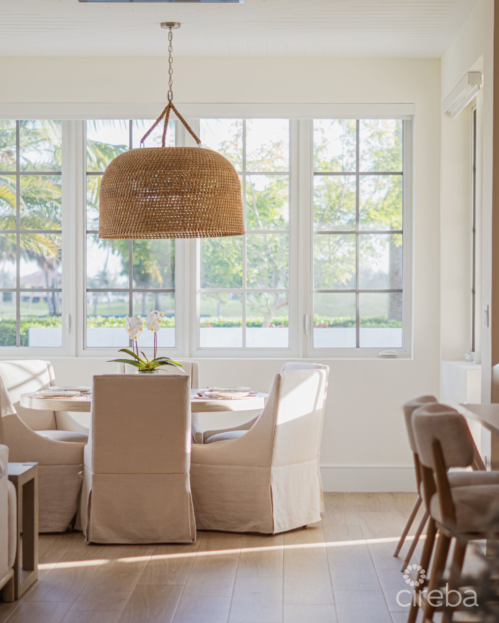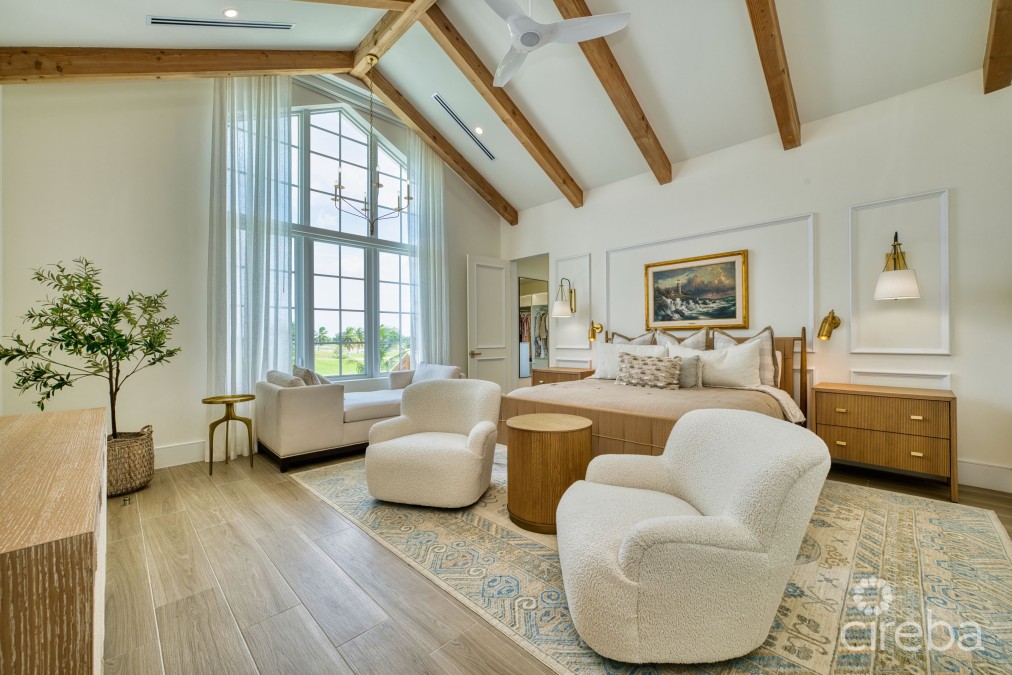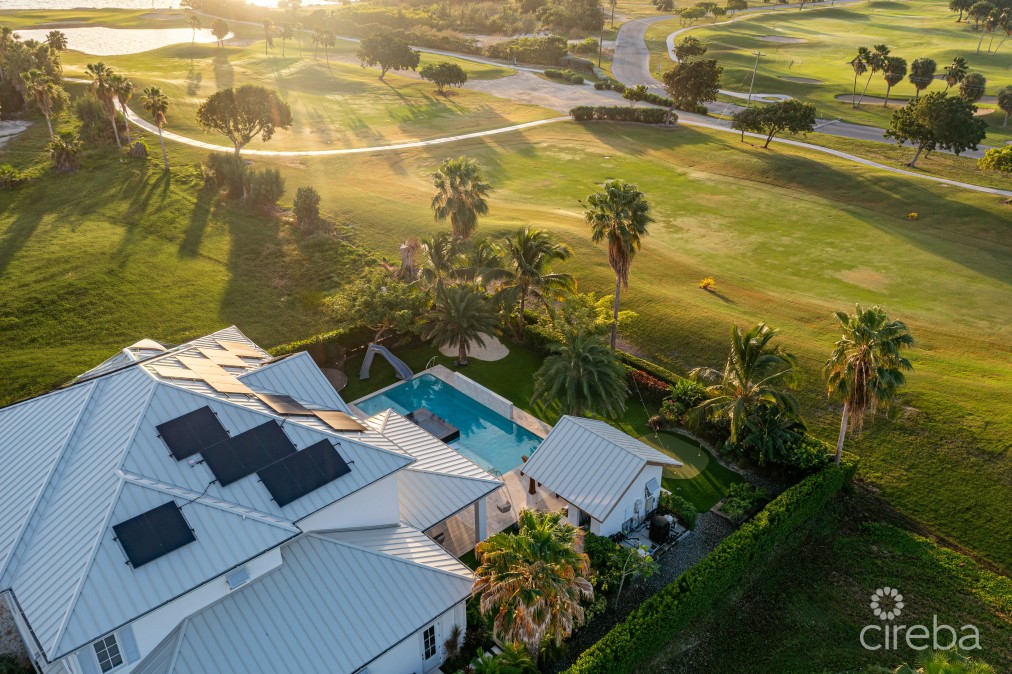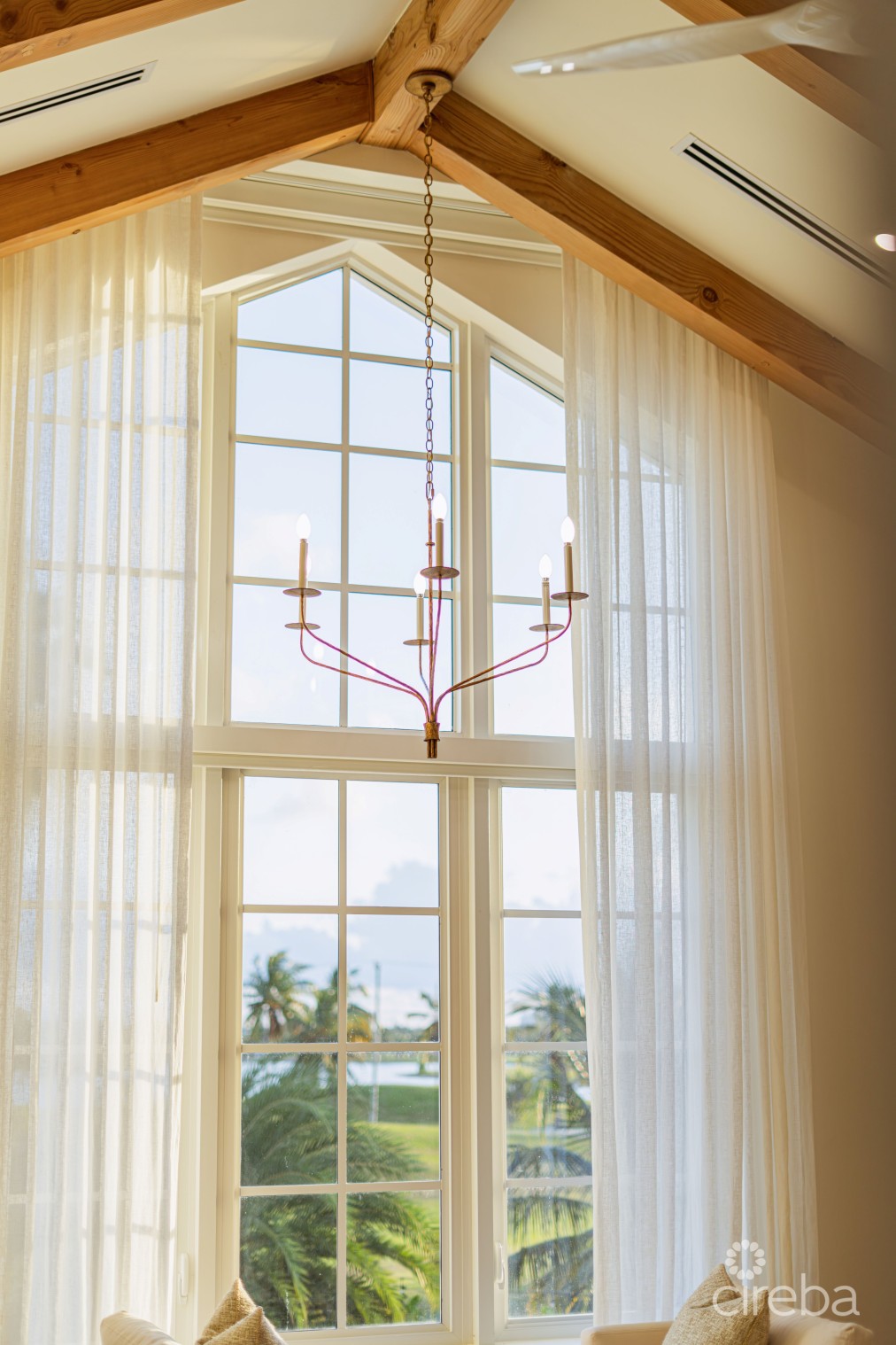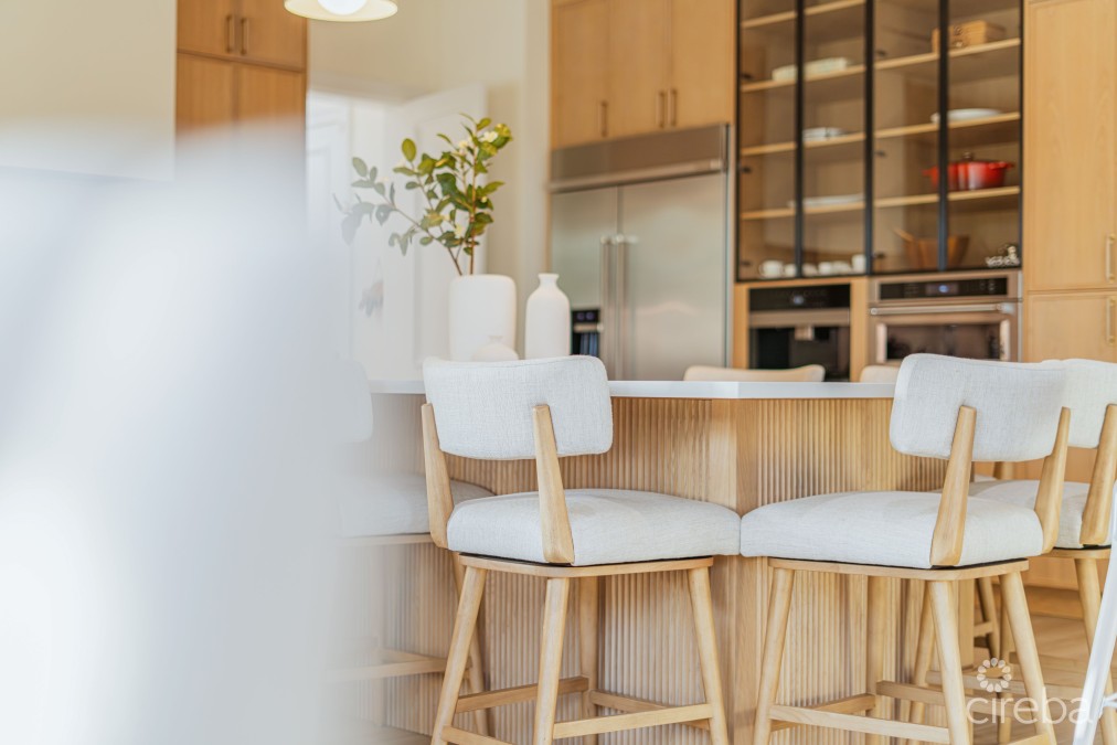 Welcome to 234 Crighton Drive, a elegantly crafted five bedroom, five bathroom family home, where sophisticated design and exceptional craftsmanship elevate every inch of the home. A custom staircase sets the tone upon entry, leading to expansive living spaces enriched by high end millwork, elegant finishes and thoughtfully curated decor. The chef’s kitchen is a standout masterpiece with a six burner gas stove and griddle, double ovens, double dishwashers, an ice maker and a built in coffee maker. Adjacent living and dining areas flow seamlessly outdoors to a private oasis featuring a luxurious pool with hot tub and playful water jets alongside a handcrafted Cedar and Cypress wood Gazebo. The home’s interior is equally impressive, offering a dedicated study, a serene primary suite highlighted by cedar ceiling detail, his and her walk in closets and a garment steamer discreetly tucked into her closet along with a convenient laundry chute. The children’s rooms are beautifully appointed including bespoke pieces created by a Brazilian furniture designer which add an elevated yet playful touch. An automated retractable ladder provides access to the fully finished attic, currently serving as a bright and inviting playroom. An elegant en suite guest bedroom on the ground floor completes the home. Throughout the home variable speed air conditioning with individual thermostats ensures tailored comfort in every room while impact rated windows and exterior cameras contribute to peace of mind. The exterior features beautifully mature landscaping and a putting green, while just across the road a manicured garden with an impressive 100 foot dock creates a tranquil waterfront extension to the property. An oversized garage allows for plenty of storage. Additional features such as solar power, gas water heater, underground irrigation cistern and premium exterior materials speak to the home’s longevity and efficiency. With endless sunrise and sunset views over the golf course and exceptional privacy, this residence offers an elevated way of living in a highly desirable setting. All furniture is included in the sale with artwork excluded.