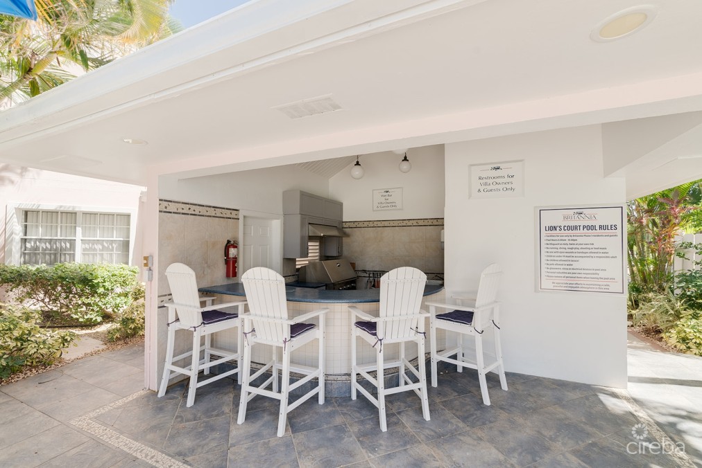 Elegant 3-Bedroom Corner Unit | 2,100 Sq Ft | Golf Course Views Welcome to this stunning, fully renovated 3-bedroom corner unit in the prestigious Britannia Lions Court. Spanning 2,100 square feet, this sun-filled home offers breathtaking views of the Britannia Golf Course, thanks to expansive windows that flood the space with natural light. Enjoy outdoor living year-round on the lavish, screened-in wraparound terrace perfect for morning coffee or evening gatherings. Inside, no detail has been overlooked. The chef’s kitchen features white quartz countertops, pearl-finish cabinetry, and top-of-the-line appliances, making it both functional and stylish. Adjacent is a sleek laundry closet with a quartz countertop for added convenience. The spacious master suite includes a walk-in closet and a luxurious ensuite bathroom designed for comfort and relaxation. The elegant living room boasts a serene garden view and comes complete with a 70-inch flat-screen TV, while the formal dining area easily seats 8 guests, perfect for entertaining. This turnkey residence is beautifully furnished with designer touches throughout ideal for those seeking style, space, and serenity in one of the Grand Cayman’s most desirable communities.