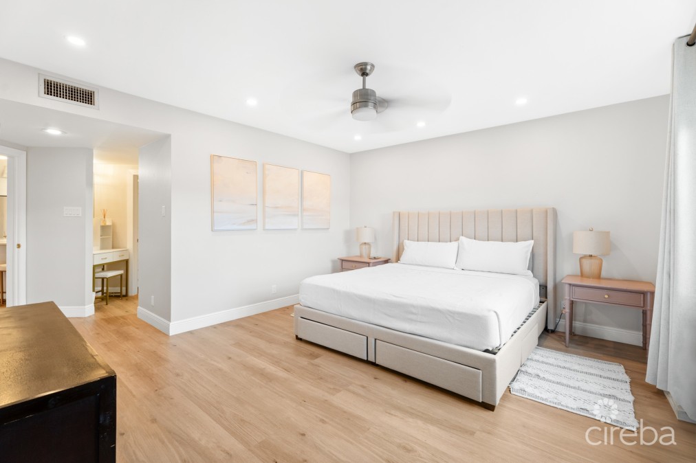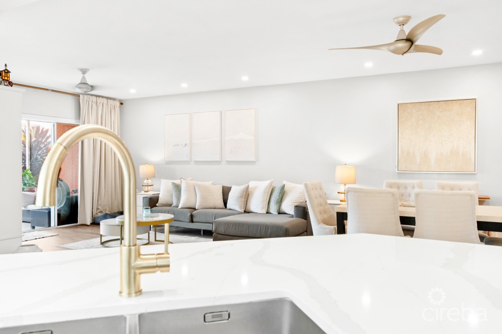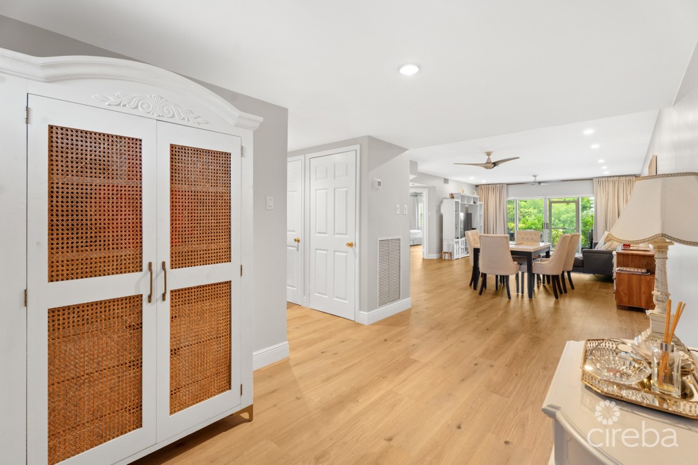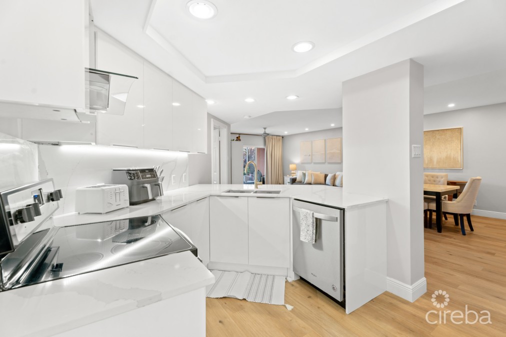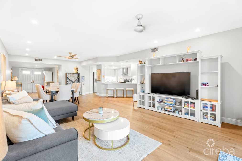 This fully renovated 2-bedroom, 2-bathroom residence offers 1,738 sq. ft. of modern living space in Regents Court at Britannia, ideally located in the highly sought-after Seven Mile Beach corridor. This spacious ground-floor condo features an open-plan layout with a beautifully updated kitchen, dining, and living area that flow seamlessly to a peaceful screened-in patio overlooking the canal. A private dock provides added convenience for boating enthusiasts just steps from your door. The residence also benefits from allocated parking. Britannia residents enjoy 24-hour security and excellent amenities, including a large swimming pool, hot tub, tennis court, BBQ area, and beautifully landscaped grounds. The location is just a short walk to Seven Mile Beach, schools, and Camana Bay, with restaurants, a grocery store, shops, and amenities. Combining location, convenience, and turnkey elegance, Britannia 613 is an ideal home for families, professionals, or as a rental investment property.