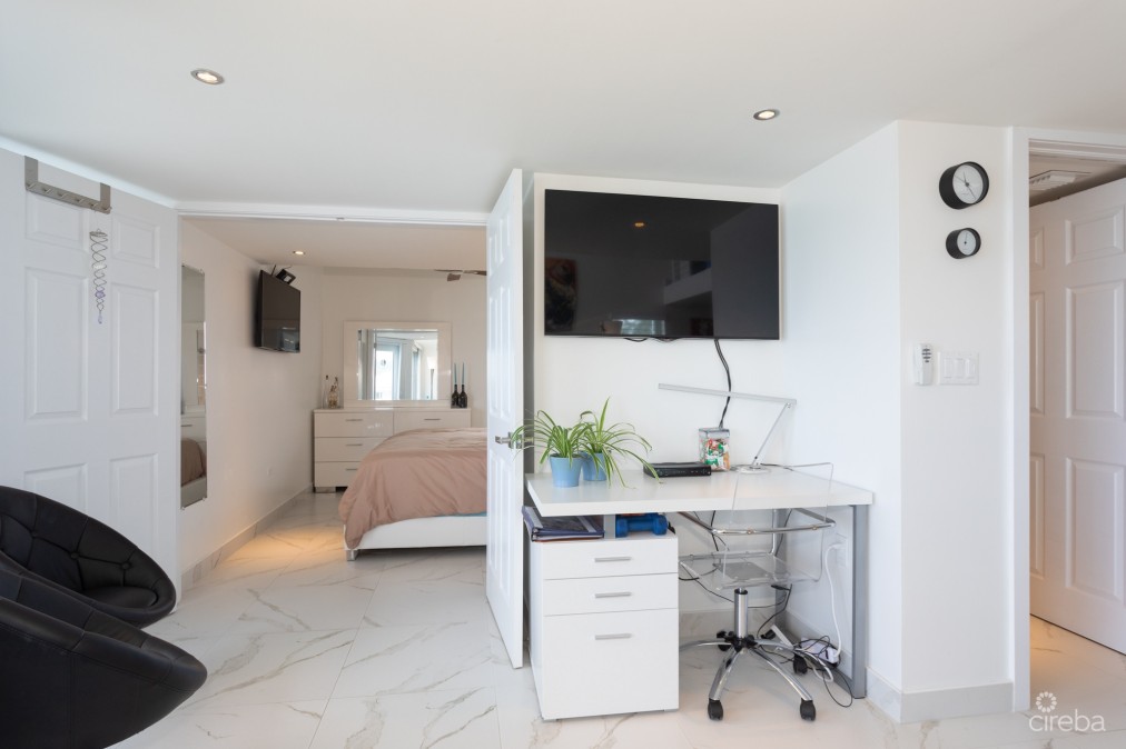 Escape with panoramic ocean views from the balcony of this converted 3 bedroom condo at Cayman Reef Resort. Renovated to increase living space and efficiency for rental, the main level has 2 bedrooms, one bath, kitchen, and living with a balcony overlooking Seven Mile Beach. The upper level has a loft/den that overlooks the living area and an additional bedroom and bathroom. Currently only rented as a 2bed, the condo sees roughly $125K gross income per year with frequent owner usage. Future bookings are already confirmed, so you can step in with instant income. Cayman Reef Resort offers an elevated beachfront seating area with chaise lounges and umbrellas, and easy access to the ocean and beach. There is also a centrally located pool and tennis/pickleball court near the entrance of the complex. The condo has one assigned parking spot, and there is ample visitor parking for additional cars near the entrance as well. Camana Bay is only a few minutes' walk over the bypass bridge for shops, restaurants, fitness studios, and movie theater. Dozens of restaurants and more shops are all within a short walk. More importantly! Cayman Reef Resort and Seagull will be combining to redevelop with a new design - already voted to move forward by the owners. Contact for more information on the future of the development and get in now before the price is sure to increase soon!