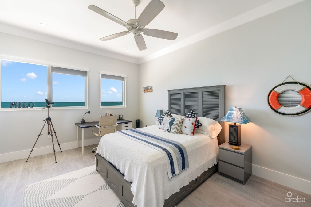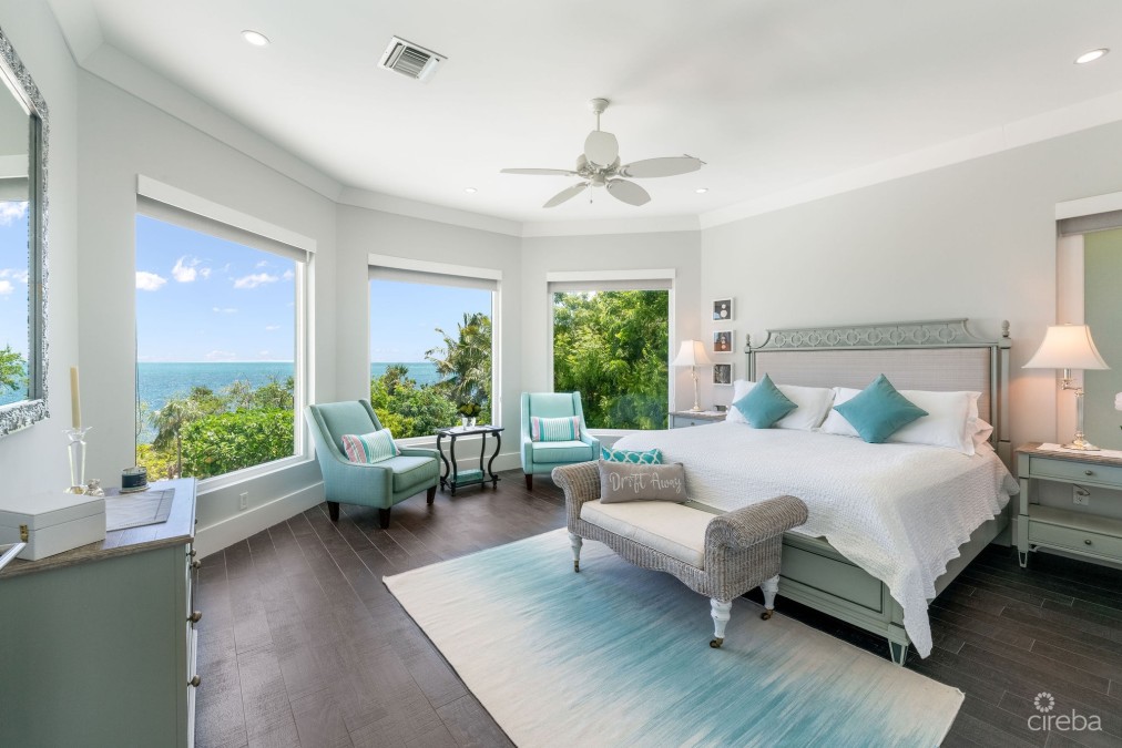 Prominently located within the exclusive enclave of Vista del Mar, Grand Cayman’s most prestigious gated community, Chiaro di Luna is an exceptional 9,300 sq. ft. oceanfront estate offering the highest level of privacy, security, and luxury living. Set on a 1-acre lot with over 130 feet of prime ocean frontage, this estate enjoys panoramic views across the North Sound toward Rum Point and beyond. A fully serviced dock with power, water, and storage provides seamless access to the sea, making it an ideal retreat for boating enthusiasts. Upon entering through the private gates, you are welcomed into an impressive foyer with soaring ceilings and sweeping views of the Caribbean Sea. The open-concept design connects the living, dining, and chef’s kitchen areas—perfect for both family gatherings and grand-scale entertaining. A generously sized office and a guest suite are also located on the main floor. Oversized windows and patio doors flood the interiors with natural light and open directly to the expansive outdoor living areas, where you’ll find a resort-style pool, gazebo dining area, and manicured grounds. The upper level features a TV lounge and four additional bedrooms, each with ensuite bathrooms. The primary suite offers breathtaking views of the North Sound from its bay window and cozy seating area. A separate staircase leads to a third-floor bedroom or office, complete with ensuite bath and commanding sea views. Above the double garage and carport is a self-contained apartment featuring two ensuite bedrooms, a lounge, dining area, and kitchen, along with a dedicated home gym. As part of Vista del Mar, residents enjoy access to tennis and pickleball courts, a clubhouse, a marina, 24-hour gated security, and on-site management. Chiaro di Luna embodies the essence of refined island living. Contact us today to arrange a private viewing of this extraordinary estate, its grounds, and the exclusive Vista del Mar community.