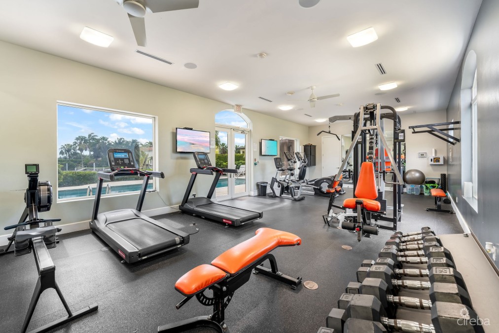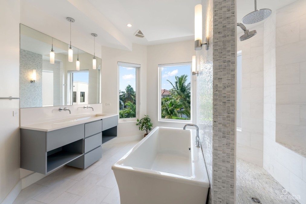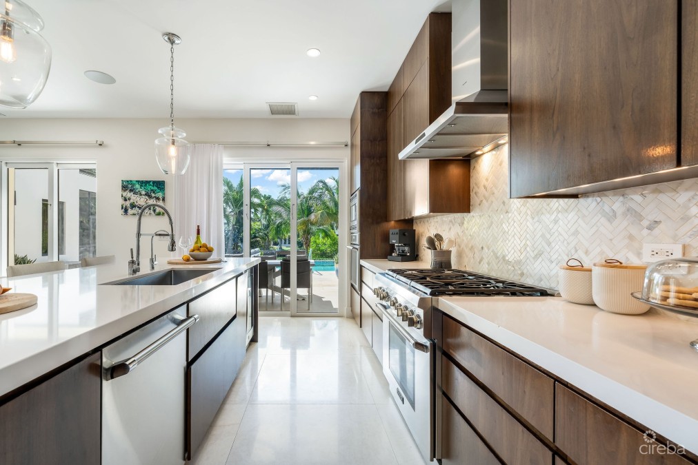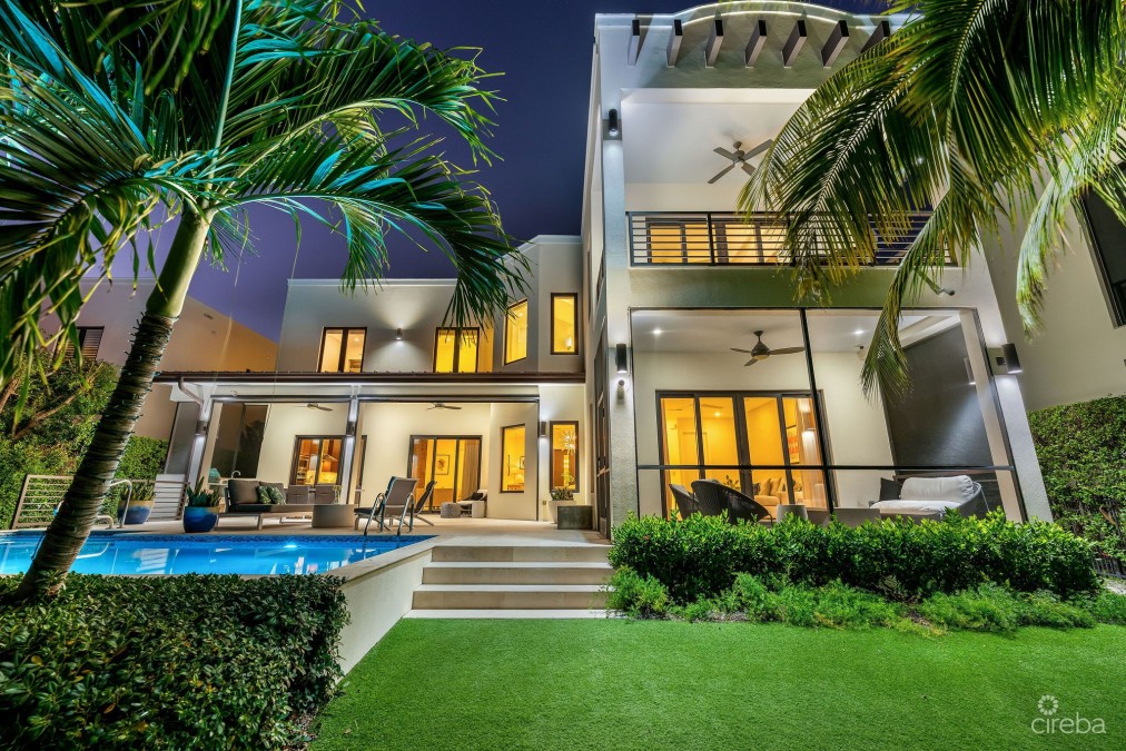 In Cypress Pointe North, set within the prestigious gated enclave of Crystal Harbour, this exceptional canal front residence offers the rare combination of private estate living with the ease of a professionally managed strata. Thoughtfully designed for both refined comfort and effortless entertaining, the home delivers a lifestyle defined by privacy, waterfront access, and elevated outdoor living. The main level is designed for both connection and comfort, featuring an expansive open-plan layout where the kitchen, dining area, casual sitting space, and main living room flow seamlessly together while offering distinct areas for everyday living and entertaining. This thoughtful design allows for effortless interaction without sacrificing a sense of structure and purpose within each space. A separate den adds flexibility, complete with pocket doors that allow it to be enjoyed as an open extension of the living area or closed off for privacy as a media room, office, or quiet retreat. Both striking and highly functional, the kitchen showcases floor-to-ceiling wood cabinetry and a full suite of premium stainless-steel appliances. The wall oven and microwave complement an additional dual fuel electric oven with gas cooktop beneath a sleek overhead exhaust hood. A deep stainless-steel sink and dishwasher enhance everyday practicality, while an integrated under-counter filtration system provides crisp, alkaline drinking water straight from the tap. This kitchen is designed to meet the expectations of serious cooks and effortless entertainers alike. The upper level accommodates four generously sized bedrooms, including a refined primary suite and three additional bedrooms well-suited for family or guests. Two bedrooms benefit from private ensuite bathrooms, while the remaining two share a well-appointed bath. The primary suite offers a calm retreat, complete with a spa-inspired bathroom featuring a deep soaking tub, gorgeous walk-through double shower and oversized double vanity. A private balcony overlooks the pool and canal, providing a secluded sanctuary over the water. The laundry room is also conveniently positioned on this level. Outdoor living is the true heart of the home. A fully appointed outdoor kitchen, including a built-in, XL Big Green Egg BBQ, creates the perfect setting for outdoor gatherings. The main patio transitions seamlessly between open-air and enclosed comfort with automatic retractable screens, while a second fully screened living area extends directly from the main living room. Low-maintenance artificial turf enhances the grounds, creating multiple curated spaces to relax, entertain, and enjoy the tranquil water views. This beautifully landscaped tropical setting is fully fenced for privacy and centered around a resort-style pool and expansive entertainment deck. Along the canal, a fully serviced Trex dock accommodates boating and waterfront living, complete with a fish cleaning station and separate jet ski dock. The home is also equipped for resilience and efficiency. Energy-efficient geothermal climate control provides consistent comfort while significantly reducing operating costs. Exceptional storage has been thoughtfully integrated throughout. In the event of a power interruption, the solar panel system and automatic battery backup provide seamless comfort. All essential systems, outlets, and upstairs air conditioning operate effortlessly and continuously, with solar recharging during daytime. Ownership includes access to Cypress Point North’s private community amenities, including a tennis court, fitness center, and a community pool with outdoor kitchen and gathering areas, all within the security and prestige of Crystal Harbour. Cypress Point North #405 represents a rare opportunity to own a turnkey canal front residence offering estate-level privacy, exceptional outdoor living, modern energy independence, and the security of one of Grand Cayman’s most sought-after gated communities.