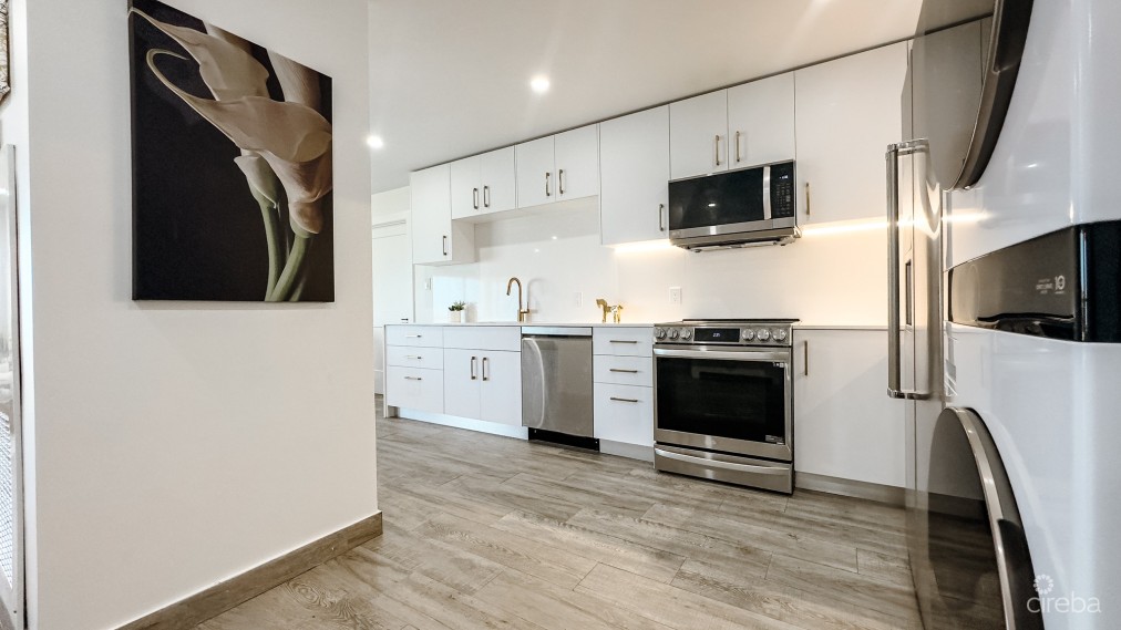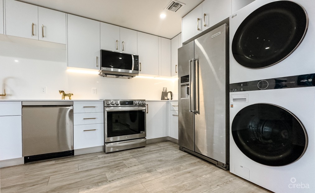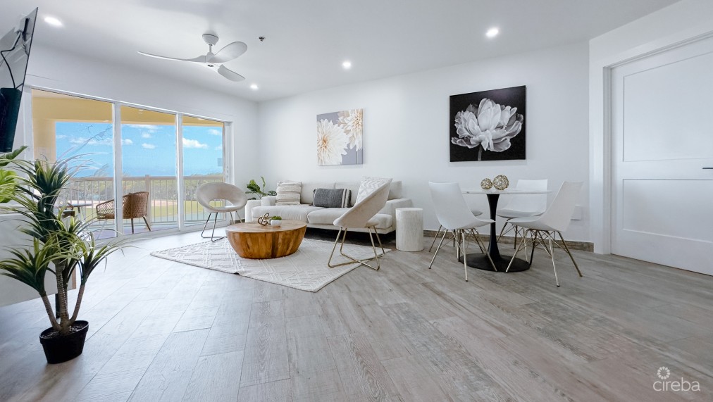 Luxury Living Redefined in Crystal Harbour: Welcome to the Grand Caymanian Penthouse, a rare opportunity to own a stunning top-floor residence within the prestigious Crystal Harbour community—right in the heart of the Seven-Mile Beach Corridor. This recently fully renovated, 1,400 sq. ft., two-bedroom, two-bathroom penthouse is your gateway to elevated island living, where golf course views, ocean breezes, and resort-style amenities await. Located in the boutique Grand Caymanian Hotel, this penthouse seamlessly blends the comforts of a private residence with the conveniences of a world-class resort. Enjoy two oversized bedrooms, both with chic contemporary ensuite bathrooms. Unwind in an open-plan, light-filled living space enhanced by LED recessed lighting, a modern white kitchen with gold accents, crisp white quartz waterfall countertops, and stainless-steel appliances. Incredible Views, Vibrant Living, & Exceptional Value: This is not just a penthouse—it’s a lifestyle statement. Step out onto two large private balconies overlooking the lush greens of the 18-hole North Sound Golf Course and the tranquil Caribbean Sea. Here, your morning coffee comes with a sunrise view, and your evenings wind down to ocean breezes and the 7-Mile Beach Skyline. From pickleball courts and a resort-style pool to a private beach lined with coconut palms, loungers, hammocks, and shaded gazebos, every amenity has been designed to enhance your daily life. Enjoy access to an onsite restaurant and bar serving breakfast, lunch, and dinner, a modern gym, a pet-friendly environment, elevators, and a welcoming hotel lobby with concierge services. A Smart Investment in Cayman Islands Real Estate: Situated within the gated, multimillion-dollar canal-front enclave of Crystal Harbour, this Seven Mile Corridor Penthouse condo offers a unique entry point into one of the Cayman Islands’ most coveted addresses. Whether you’re a first-time buyer or seasoned investor, this is an exceptional opportunity with no restrictions on short- or long-term rentals—ensuring flexibility and strong potential for return and capital growth. Minutes from Seven Mile Beach, Camana Bay, and fine dining, and just a short boat ride to Stingray City, Rum Point, Kaibo, and Starfish Point, the location offers both prestige and convenience. Outdoor lovers can enjoy boating, swimming, golfing, and peaceful walks along private canal-front roads in Crystal Harbour. This Is More Than a Home—It’s a Lifestyle: Whether you envision weekend brunches on the balcony, paddleboarding off the jetty, or simply enjoying the sunset from your private beach, the Grand Caymanian Penthouse invites you to live with intention and connection in a truly remarkable setting. The monthly strata fees include building insurance and utilities! Schedule a private tour. Don’t miss out on this opportunity. How do you want to live your life?