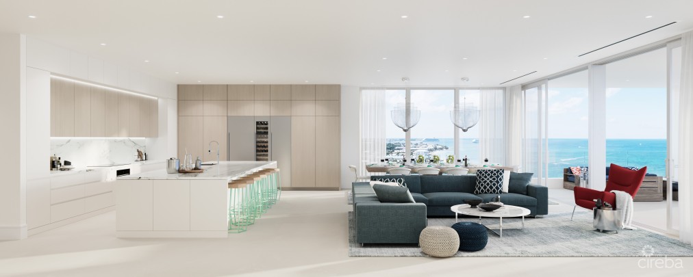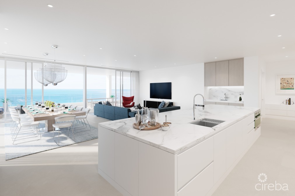Designed for distinction by Swedish architects, OOAK, this exclusive residence maximizes the abundance of light and views with 10-foot floor to ceiling windows and sliding glass doors. The perfectly composed interiors of this 3-bedroom, 3.5 bath residence balance form and function, providing thoughtful and beautifully crafted spaces with subtle detailing throughout. The open floor plans enhance light and view to provide seamless inside/out living. Lacovia blends lofty integrated living spaces with breath taking views of Seven Mile Beach. Expansive windows frame the seascape, while custom cabinetry provides unified design and discrete storage from the lounge areas to the bedrooms and beyond. Gourmet chef’s kitchens with Miele and Sub-Zero appliances allow for effortless entertaining. *Monthly maintenance and insurance costs are to be confirmed.*