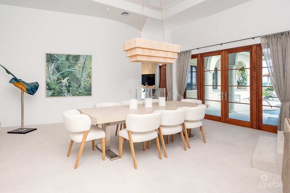 the MIRAMAR Estate is truly one of the best positioned and designed estate bravura residences that you will find in the Cayman Islands. Simply a true legacy Estate. With the architectural design and site layout of the MIRAMAR Estate, it awards one with the unobstructed North Sound Sea turquoise water and pool views from each and every room of the residence, and they are simply exceptional! More so, the design makes full use of its property, providing, by its architectural position, areas of shade and sun available throughout the day and protection from any blistery days. It is also a design that takes full advantage of natural daylight making the interior feel vibrant throughout the day. The estate enjoys 1.21 acres and 215 ocean front width, which delivers not only immense privacy and generous setbacks from the private road, with sweeping circular driveway, but it also offers the new owner the opportunity to accommodate additional building structures on the Estate such as guest cottages, office studios, garage pods to name a few potentials. the MIRAMAR Estate currently enjoys 10,550 sqft, 5 bedrooms with ensuite baths, 5 full baths 2 powder rooms, 3 car garage, Gym and Staff Apartment quarters 1/1 (compact Guest Studio). A highly unique feature of the MIRAMAR Estate is its Private Marina Berth (65ft – double size) – with dedicated storage locker and restroom. The Marina (Marina East – “E1”) is conveniently located directly across the street from the Estate. It is important to highlight that it is the ONLY Estate in Vista Del Mar that has this ease and direct access! the MIRAMAR Estate has undergone an extensive renovation (year 2024), including an exquisite Chef’s Kitchen with Miele appliances – the views from the kitchen are just fabulous! Architectural mill work throughout by highly regarded local mill work company. The executive primary bedroom is striking, and the primary bathroom is simply stunning – the 180 degree views are just: WOW! The grand entrance gallery affords for the most discerning of art collection exhibitions. The property enjoys large pool, also upgraded (heated) with Water and Fire bowl features along with contemporary lighting and state-of-the-art energy efficient equipment. Along with all NEW fixtures, fittings, equipment (FFE’s), flooring and brand-new furnishings grants the new owner a never lived in residence experience, truly turnkey! the MIRAMAR Estate lets you live your lifestyle the precise way that you have always envisioned your distinguished Caribbean living. the MIRAMAR Estate is located in Vista Del Mar, the premiere exclusive gated community on Grand Cayman and offers a sanctuary of peace, privacy and privilege. A community developed for the truly discriminating owner and investor. Great privacy. VISTA DEL MAR Development Features: Ideally located in the Seven Mile Beach Corridor | Golf Cart driving around the community, including must do excursions to the nearby popular restaurants in the neighborhood (Morgans and Bacarro) and the Kimpton/Seafire/Indigo Hotels with their numerous outlets | Highly sought after and prestigious gated community | Near immediate access to North Sound | 24 hour security | On-site manager & clubhouse | Flood lit tennis and pickleball court | Boat trailer storage | Recycling program | Individual private garbage collection | Private canals | PRIVACY! INCLUDED in the sale is a COBLAT Bow Rider Boat | 25 feet | 350hp Mercury outboard engine (very lightly used / low hours on engine) | 2019 year | Cost new KYD128K | Complete electronic package / twin Garmin glass screen electronics | Full storage cover, fenders, lifejackets (family sizes), boat hooks etc. - lovely family boat. The viewing of this property is a must to fully appreciate the legacy estate, that is MIRAMAR!