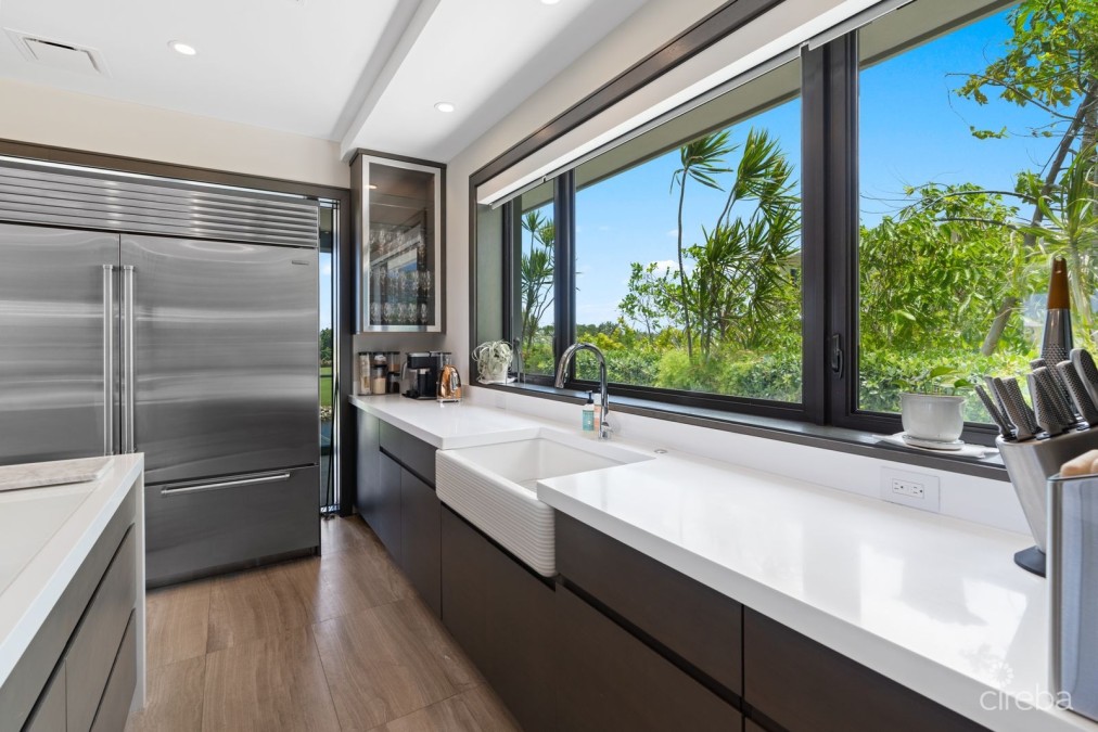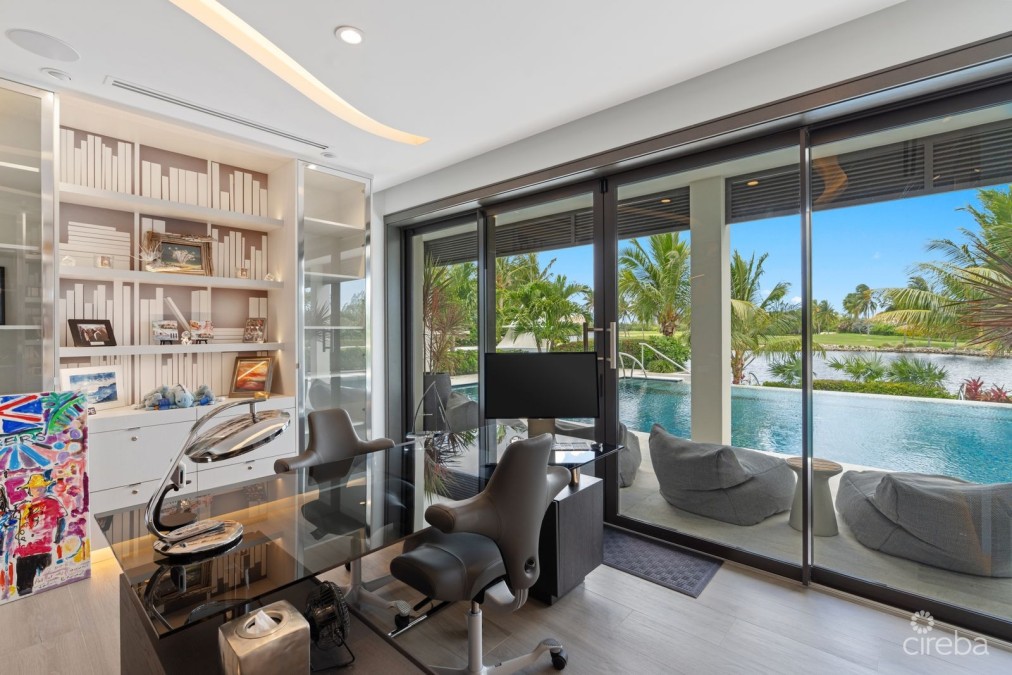 Offering the privacy of a villa with the benefits of resort-style living, Deckhouse 9 is a rare canal-front retreat located within the exclusive Ritz-Carlton, Grand Cayman community. This secluded five-bedroom, six-and-a-half-bathroom residence combines refined architecture, expansive interiors, and direct access to world-class amenities—all in one of the Caribbean’s most prestigious enclaves. Set on over half an acre with 8,775 square feet of total living space, the home spans three levels and includes a detached guest suite above a double garage. The top floor is dedicated entirely to the master suite, complete with a walk-in dressing room, private study, and spa-inspired bathroom with LED-lit soaking tub and glass-enclosed shower. Four additional guest bedrooms—each with an ensuite bath—are thoughtfully positioned for privacy, two of which open directly to the pool terrace. The chef’s kitchen is fully outfitted with Miele appliances, Sub-Zero refrigeration, and an integrated wine room. Multiple indoor and outdoor living areas take in long canal views, while a private media room, custom office, and Savant smart-home system offer modern convenience throughout. Outdoors, the villa features a 45-foot infinity-edge pool with a 30-foot glass wall, 16-person jacuzzi, fire pit, and full-length private dock define the canal-facing exterior. Landscaping by Vigoro creates a lush, serene backdrop, enhanced by fountains and carefully curated lighting. A vacuum elevator, 24KW rooftop solar array, rainwater cistern, German-engineered feature staircase, and full security system complete the home’s thoughtful amenities. As part of the Ritz-Carlton, Grand Cayman, residents enjoy privileged access to the resort’s dining, spa, tennis, golf, and water sports—plus a personal golf cart for seamless access to it all. Deckhouse 9 is a private villa that offers the best of both worlds: the comfort of a standalone residence with the ease and elegance of five-star resort living.