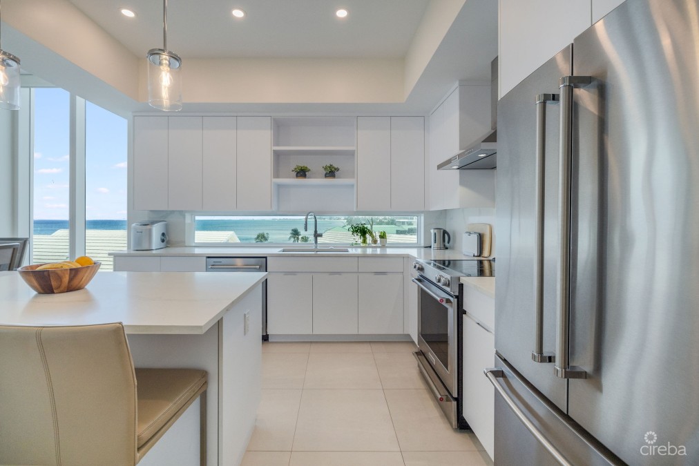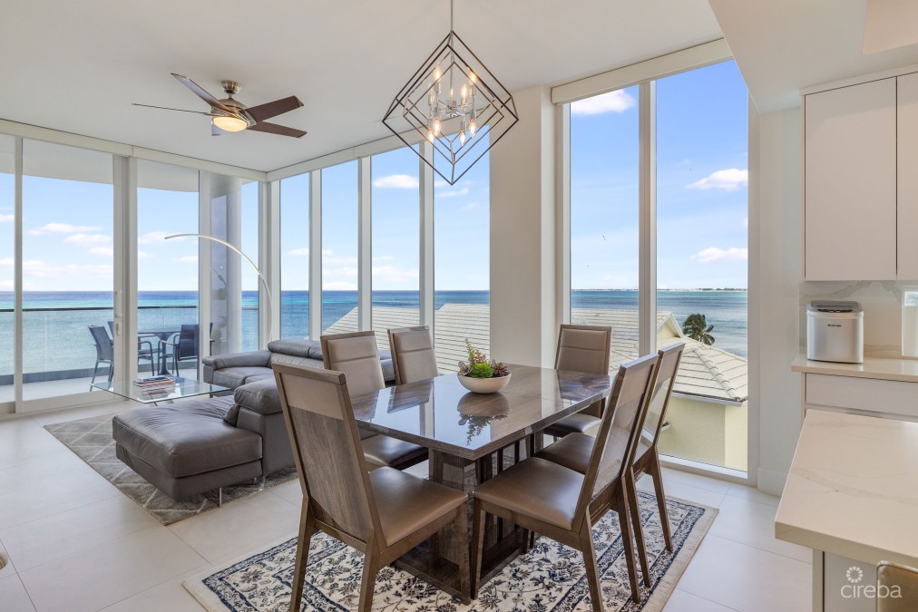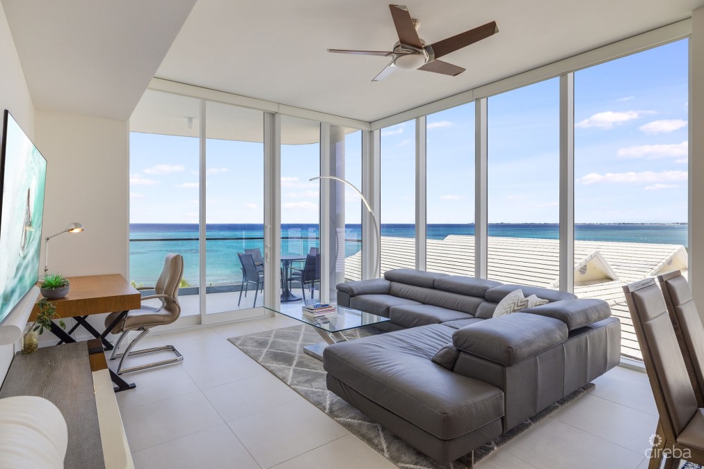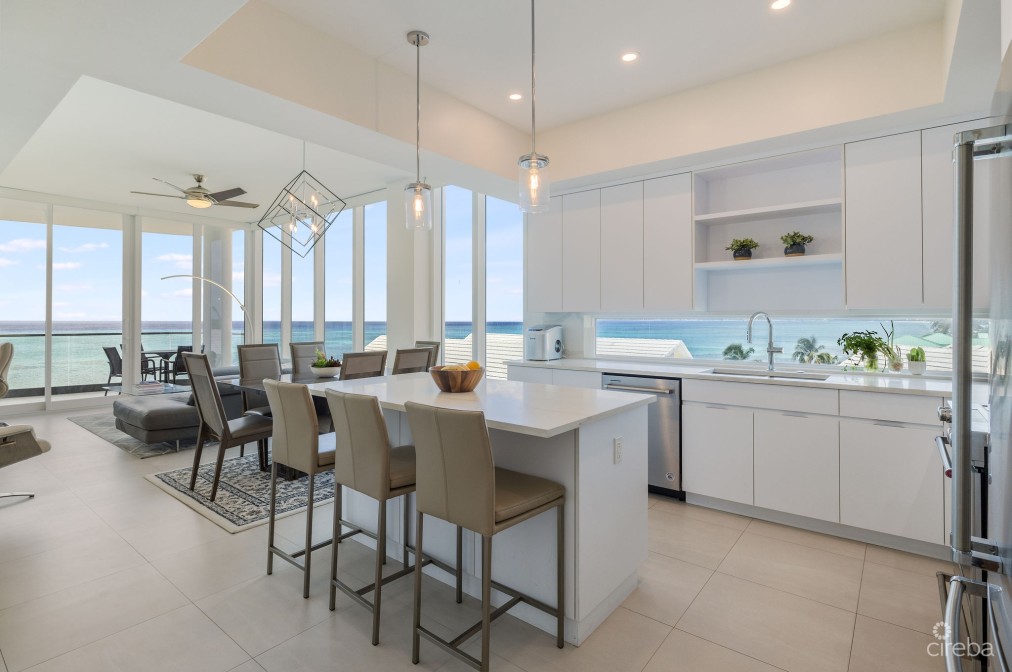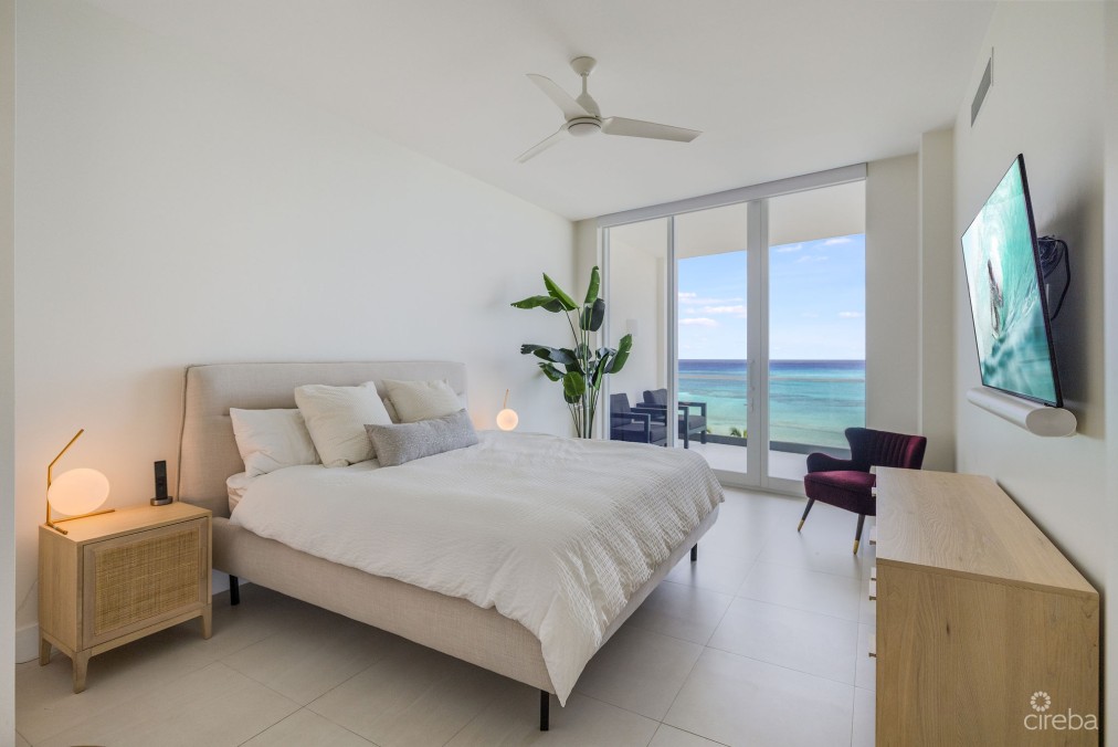 Absolutely stunning residence and views from everywhere! The perfect height for privacy with spectacular sights through the floor to ceiling windows. Views of the palm trees, pool, beach and Caribbean Sea, and Seven Mile Beach shoreline all the way to Northwest Point. Not too high in the building to be able to enjoy all of this. Even the back bedroom, bathroom, and kitchen have windows with full views of Seven Mile Beach and the Sea. Really quite amazing! A gorgeous wide balcony on the beachfront is ideal for sunsets, lounging, dining, and entertaining. If you truly want the very best beachfront lifestyle, this residence offers unprecedented bespoke living on Seven Mile Beach. It is completely turnkey – fully furnished with brand new furnishings, bedding, linens, comprehensive kitchen package of everything that you would ever need including countertop appliances, and an enhanced audio visual package with Samsung Art Frame TVs in the living room and each bedroom, including Sonos Soundbars and much more. Seacrest has a rooftop deck lounge area for residents to enjoy, beachfront pool and spacious deck, fitness center, BBQ area, reception center, and covered parking. At this low price for a new, fully furnished residence with immediate occupancy, Seacrest is a tremendous value!