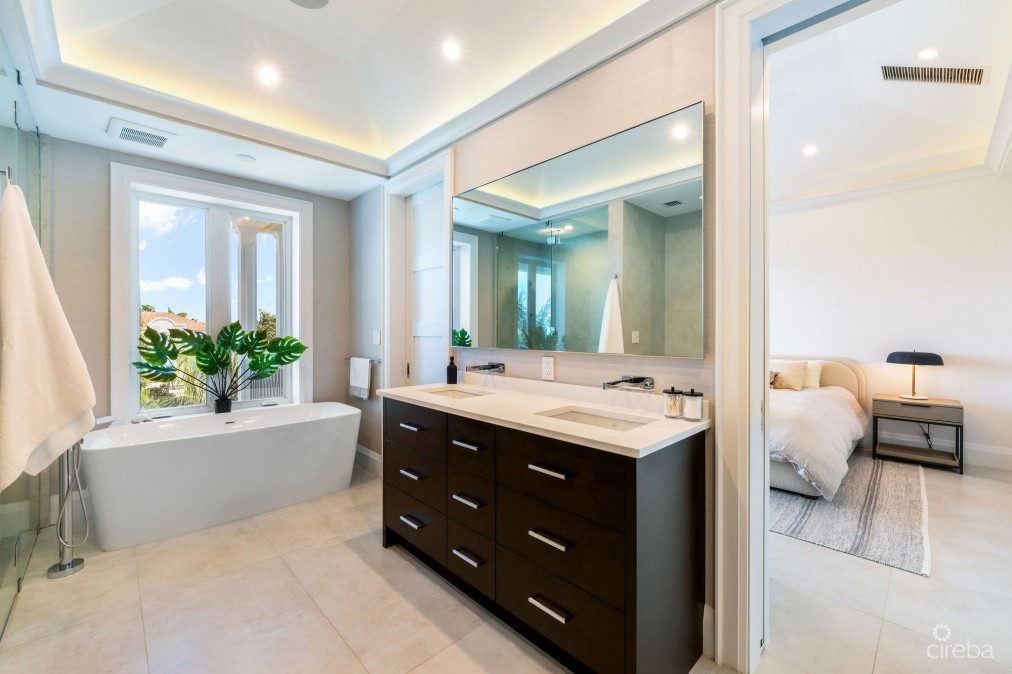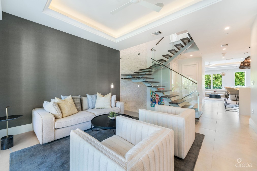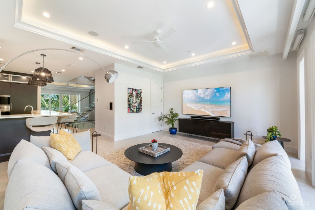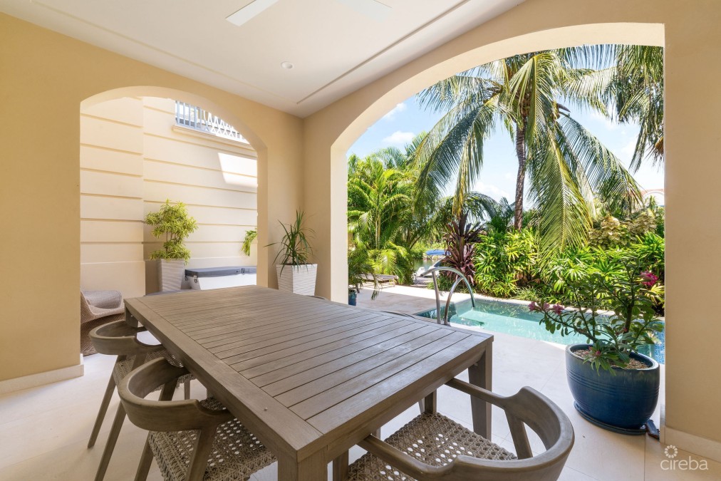 Experience the pinnacle of luxury living at The Residences of Stone Island, an exclusive haven within one of Cayman’s most coveted waterfront communities. Perfectly positioned on a private island peninsula within the prestigious Yacht Club, this exceptional residence blends seclusion, sophistication, and world-class amenities amidst lush gardens, offering unparalleled privacy within a distinguished gated enclave. Indulge in the resort-style elegance of this remarkable community, where an expansive infinity pool invites relaxation, a scenic waterfront boardwalk offers serene strolls along the shoreline, and a shaded children’s playground is artfully nestled amid tropical greenery. At the heart of this vibrant community lies the state-of-the-art owners’ lounge, a sophisticated space featuring a fully equipped fitness center, a wine cellar, a 15-seat private cinema, and a dedicated children’s club. This elegant venue is ideal for hosting private events, enjoying social gatherings, or simply unwinding with the daily coffee and tea service, ensuring a lifestyle of unrivaled convenience and comfort, all safeguarded by 24-hour security. This residence spans three generously proportioned floors, offering one of the largest floor plans in the community, with over 4,800 square feet of impeccably designed, open-concept living space. Natural light floods the interiors through expansive windows, further enhanced by vaulted ceilings in the upper bedrooms, creating a bright, airy ambiance that speaks to the very essence of refined island living. The upper-level primary suite serves as a private sanctuary, complete with tranquil canal views and an expansive en-suite bathroom reminiscent of a personal spa. The main level’s botanical-rich balcony provides a serene retreat, perfect for relaxing while enjoying the picturesque canal vistas. Complemented by a secluded plunge pool set among lush greenery, it offers a private oasis ideal for unwinding in privacy. This residence has been meticulously upgraded to the highest standards, featuring full home automation, bespoke designer furnishings and lighting, premium fixtures, and custom closets, ensuring every detail reflects an uncompromising commitment to quality. A private 2-car garage further enhances the convenience of this exceptional home. Ideally located just minutes from Seven Mile Beach and the Yacht Club Marina, with its array of exquisite dining and entertainment options, The Residences of Stone Island offer unparalleled access to the best of Grand Cayman. For those who cherish the boating lifestyle, a private dock option provides direct access to the North Sound, including iconic destinations such as Stingray City and Rum Point. Blending sophisticated design with Caribbean charm, The Residences of Stone Island present an exquisite and refined way of life, offering a truly unparalleled experience in one of the world's most sought-after locations.