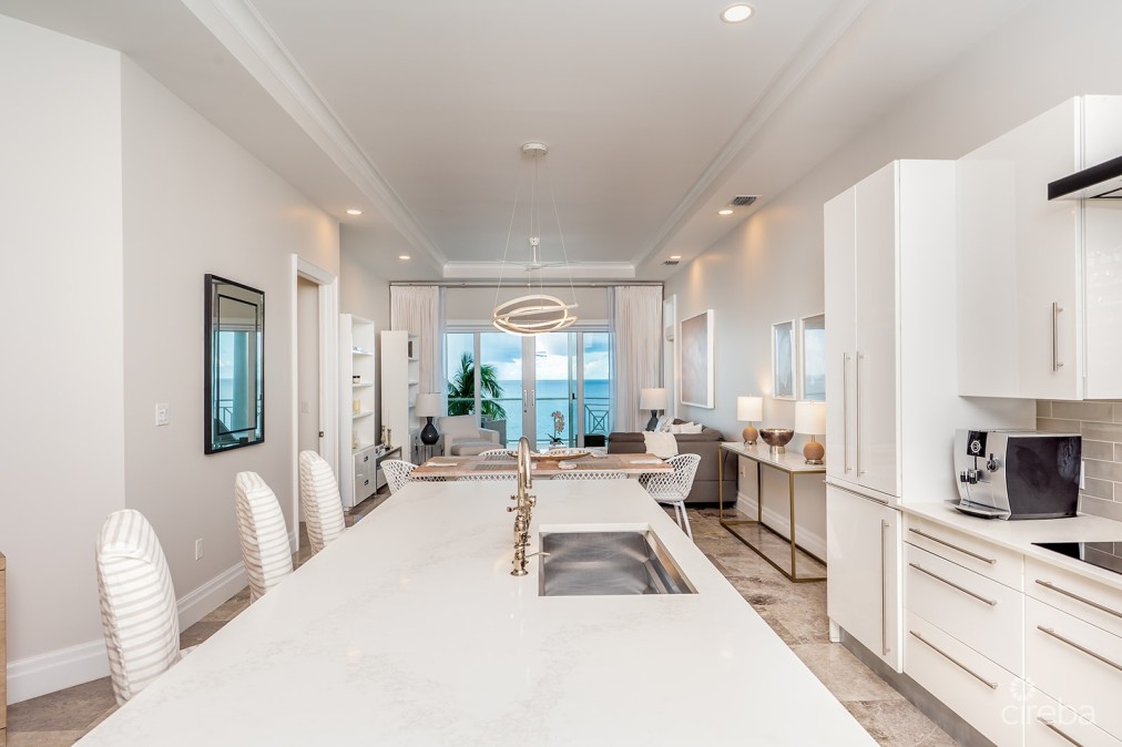 If your investment strategy and beach delight requirement is of a true beachfront luxury condominium, on the best section of Seven Mile Beach, then The Pinnacle VILLA 30 is hands down the one! Villa 30 sits within one of the meticulously operated high end condominium complexes along Seven Mile Beach (SMB) enjoying very low density of only 42 units in the complex with a tremendous width of 455 feet of the best beach Cayman has to offer on a remarkable 4 acres property. Villa 30 is a Penthouse unit (3rd floor) enjoying a generous sized 3 bed 3 bath with media room | 2120 sq AND a large beach front bump-out balcony and side view window from the living room offering lovely views of the beach and pool areas. Villa 30 has its own private 290 sq garage. Easy access via elevators. The Pinnacle is a privacy and in turn security conscious complex with security gate house, 24 hour security guards and on-site Management office. The complex also enjoys fabulous amenities; an Owner’s Lounge complete with bar, different lounging areas, pool table. A very well-equipped Gym along with a private Tennis court/Pickleball courts. No short-term rentals permitted in the complex to the benefit of all owners’ privacy and harmony. The Pinnacle’s pool, hot tubs and common entertaining areas are extraordinary. A very tranquil complex. The complex additionally enjoys a great location along the West Bay Road corridor with Governor’s Square and The Grove shopping and entertainment multiplexes within walking distance offering all service amenities such as pharmacy, grocery markets, restaurants, liquor stores, shopping and more! The views from Penthouse Villa 30, its primary suite, kitchen and living room along from its large balcony are simply gorgeous – the white hues of the deep sandy beach and the tremendous turquoise waters of the Caribbean Sea are just stunning! Move in ready!