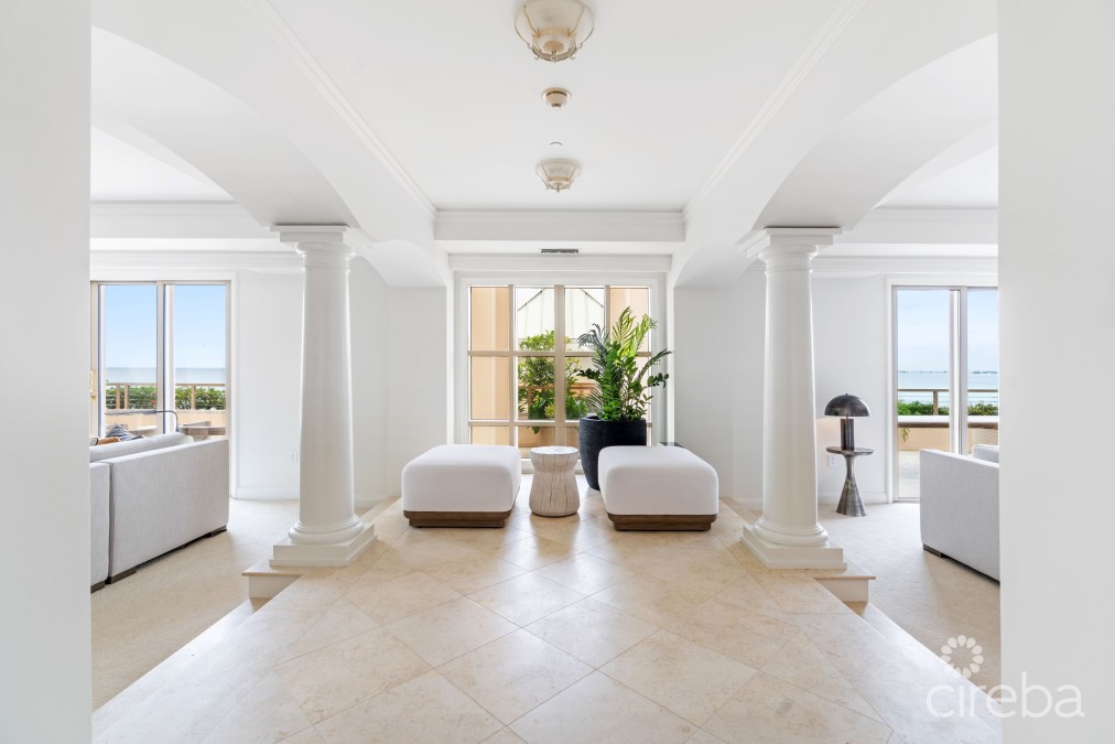 Enjoy the luxury of living at one of the most coveted addresses in the Cayman Islands: The Residences at The Ritz-Carlton, Grand Cayman on beautiful Seven Mile Beach. Residence 605 presents an exclusive opportunity to live in the largest residence at the resort at 9,280 square feet. Mindfully private, this unique residence in the South Tower offers a world-class interior space with six bedrooms, six bathrooms and unobstructed panoramic views of the Caribbean Sea from its multiple expansive balconies. A large foyer sits at the entrance to this grand residence, leading to an open-plan living area and terrace with breathtaking views of the turquoise waters, perfect for relaxing and entertaining. Two large master suites on either side of the residence boast a private terrace with ocean views and generous spa-like bathroom with tub and shower. Two additional suites have a private balcony and en suite, and a further two bedrooms have an adjacent bathroom. Owners enjoy access to the unparalleled and exceptional amenities and services at The Ritz-Carlton, Grand Cayman, a Forbes Five-Star hotel and one of the most luxurious resorts in the Caribbean. Amenities include the exceptional La Prairie Spa, five world-class restaurants such as Blue by Eric Ripert, two resort swimming pools, a Greg Norman-designed 9-hole golf course, Ambassadors of the Environment program by Jacques Cousteau, basketball and tennis courts and luxury retail outlets. Each residential tower is catered to by its own concierge teams and bellmen, with an assigned concierge for each residential owner, as well as 24-hour security. Owners also have access to a private rooftop sunset terrace. The hotel is centrally located to various acclaimed restaurants, shopping and activities, with easy access to the lively Town Centre of Camana Bay via the Rise, a pedestrian walkway from Seven Mile Beach.
