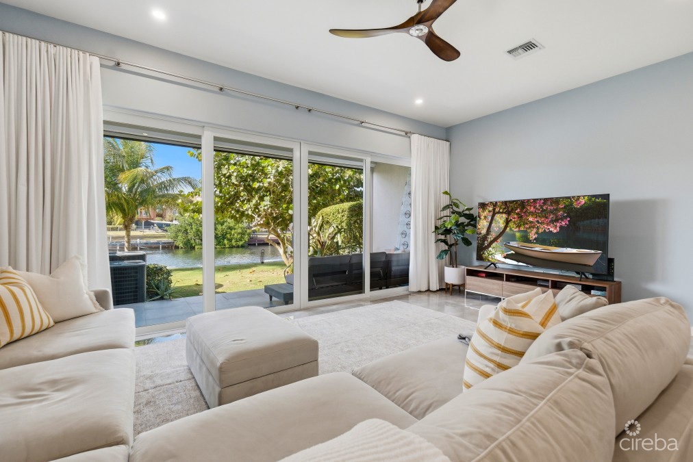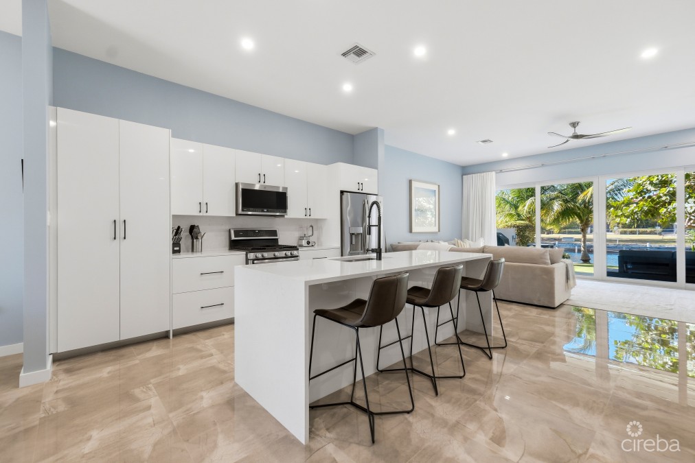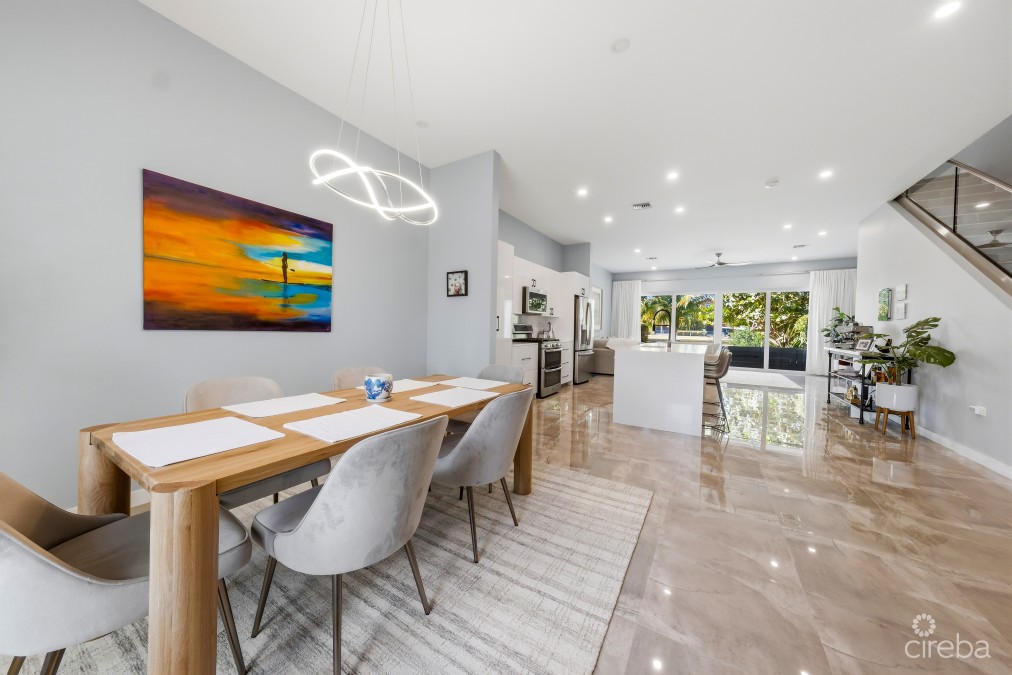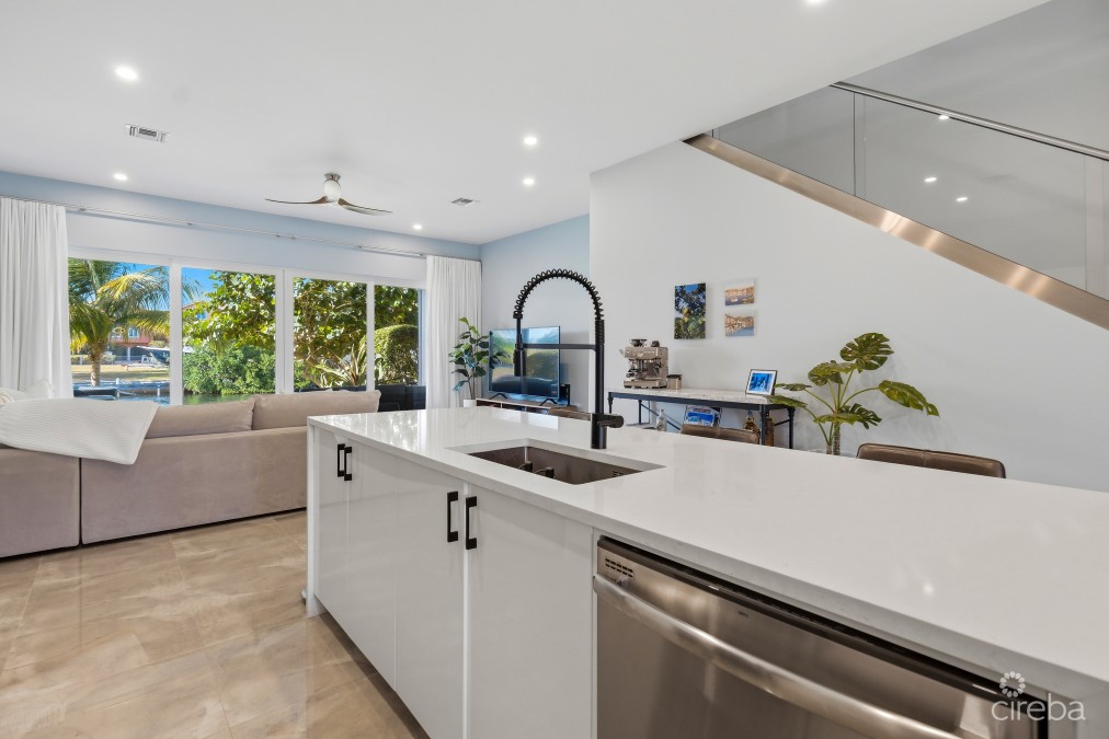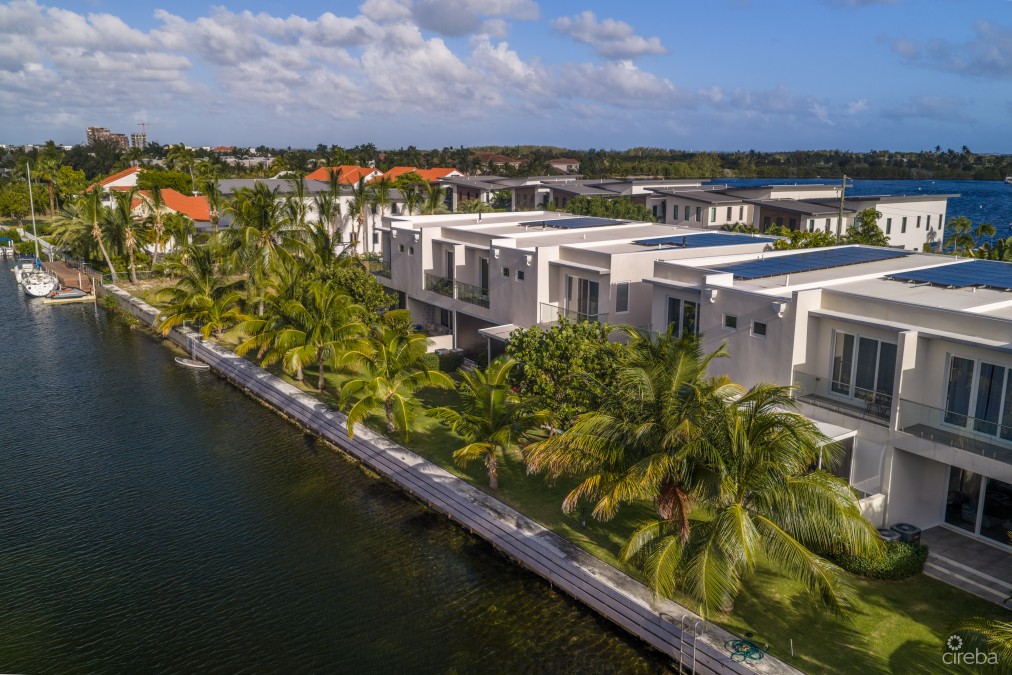 Newly Built Canal-Front Townhome in the Seven Mile Corridor – Twenty40 Located within the boutique Twenty40 community in Governors Harbour, this beautifully designed 3-bedroom, 2.5-bathroom canal-front townhome offers approximately 2,200 sq. ft. of contemporary living space in one of Grand Cayman's most desirable locations. Spanning two levels, the home features an open-plan layout designed to maximise natural light and water views. The main living area showcases 10-foot ceilings, expansive canal vistas, and a modern kitchen fitted with granite countertops, a waterfall island, solid wood cabinetry, and stainless-steel GE appliances, ideal for both everyday living and entertaining. Upstairs, all three bedrooms enjoy beautiful canal views, continuing the home's bright and airy atmosphere. The property is move-in ready, with blinds and closet systems already installed throughout. Step outside to a covered waterfront patio and private terrace, where your dock sits just steps away, offering direct access to the North Sound for boating, paddleboarding, or sunset cruises. Additional features include: • Two dedicated parking spaces with trellis coverings • Retractable Screen for the back patio • Hurricane-rated impact windows and doors • New A/C system • Upgraded electric water heater • Spray foam-insulated roof that is solar-ready Twenty40 is an intimate 16-unit canal-front community featuring beautifully landscaped grounds, a communal pool, and a BBQ area. Ideally situated in the Seven Mile Corridor, residents enjoy walking distance to Seven Mile Beach, golf, restaurants, and world-class amenities. Offering modern waterfront living, boating access, and an unbeatable location, Unit 15 at Twenty40 represents exceptional value in one of Cayman's most sought-after neighbourhoods.