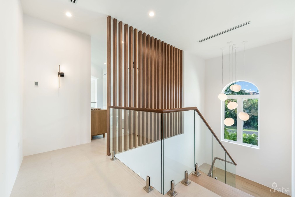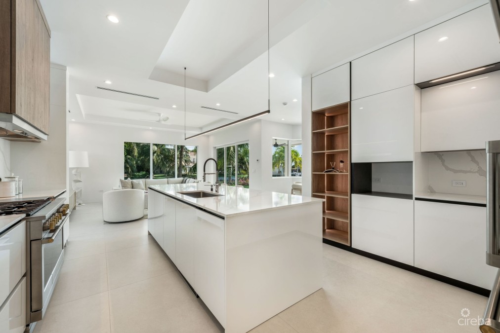 Ninety Five Bird Island | A Reimagined Waterfront Estate Set within the prestigious gated community of Vista del Mar, Ninety Five Bird Island is a comprehensively reimagined canal-front residence offering privacy, scale, and refined modern living just moments from Seven Mile Beach. The home has recently undergone an extensive multi-million-dollar renovation, resulting in a turnkey waterfront estate finished to an exceptional standard throughout. The thoughtfully refreshed interiors showcase custom Italian joinery, a professional-grade kitchen, designer lighting, large-format porcelain flooring, and seamless indoor–outdoor living spaces designed for both everyday comfort and elegant entertaining. Outdoor areas have been fully upgraded, including a renovated swimming pool, redesigned landscaping, updated exterior finishes, and generous canal-facing terraces. The property enjoys approximately 220 feet of canal frontage and includes a deeded 85’ x 25’ private dock with dedicated water and electric—a highly sought-after feature within Vista del Mar, where no new marina slips are available. Direct access to the North Sound makes this home ideal for boating enthusiasts. A valuable additional feature is the self-contained two-bedroom apartment above the garage, approximately 1,200 sq ft, with its own private entrance and patio—ideal for guests, extended family, staff accommodation, or a private office suite. Positioned at the end of Bird Island Drive, the home benefits from enhanced privacy with no through traffic, offering one of the most secluded settings within this exclusive waterfront community. Vista del Mar is renowned for its security, established infrastructure, and proximity to Seven Mile Beach, world-class dining, and island amenities. This is a rare opportunity to acquire a fully renovated, turnkey waterfront estate combining privacy, boating infrastructure, and refined modern living in one of Grand Cayman’s most desirable residential enclaves.