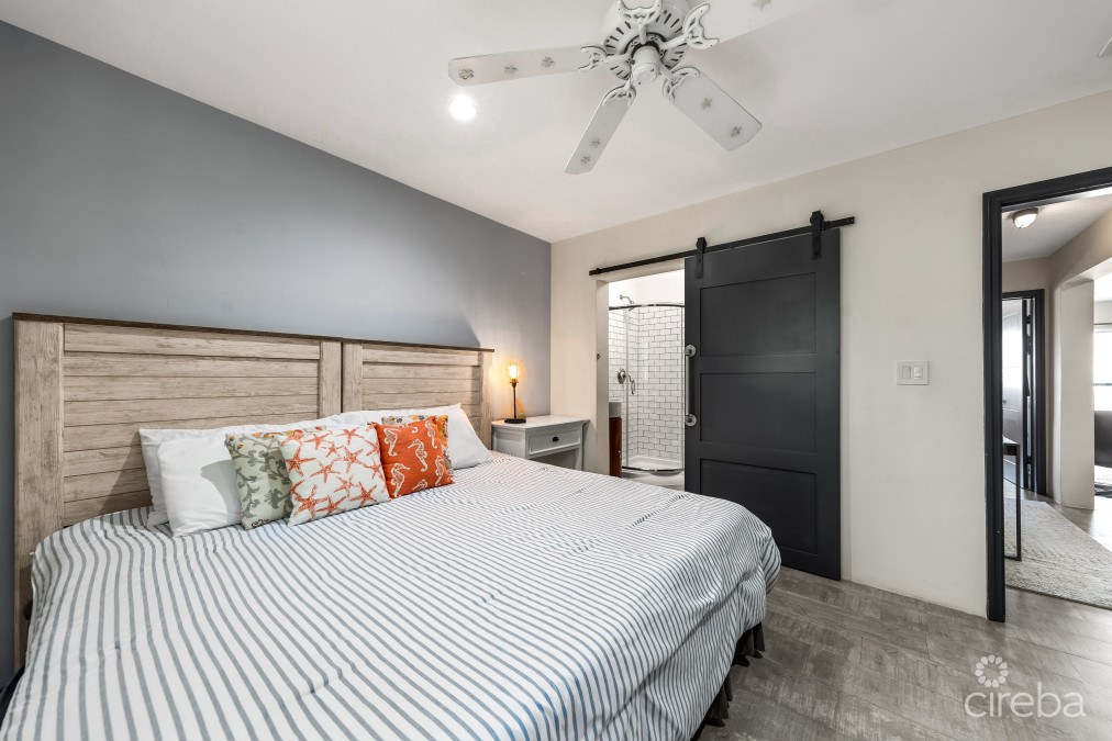 From design to lifestyle! Experience effortless coastal living in this beautifully redesigned top-floor, single-level condo, where modern design meets everyday comfort. Thoughtfully curated textures and finishes create a stylish yet welcoming atmosphere throughout the home. The fully reimagined kitchen anchors the space with an open-concept layout that flows seamlessly into the dining and living areas. A custom kitchen island serves as the perfect gathering point for entertaining or casual family living, while elegant décor and art selections enhance the home’s sophisticated character. Each of the three bedrooms offers the privacy and convenience of its own en-suite bathroom. One bedroom is currently configured as a home office, featuring a library-inspired accent wall that makes working from home both productive and inspiring. Enjoy stunning views of the Caribbean Sea and lush tropical gardens from your private patio—an ideal spot to relax, unwind, and take in the island breeze. Situated in a quiet, oceanfront community in South Sound, residents enjoy beautifully maintained grounds, a swimming pool, generous green spaces, and a private cove with direct access to the water, perfect for swimming, snorkeling, or diving. Move-in ready and exceptionally well maintained, this chic residence is ideal for couples, young families, or savvy investors, offering excellent value with very reasonable strata and maintenance fees. A rare opportunity to own a timeless coastal home designed for both lifestyle and long-term enjoyment.