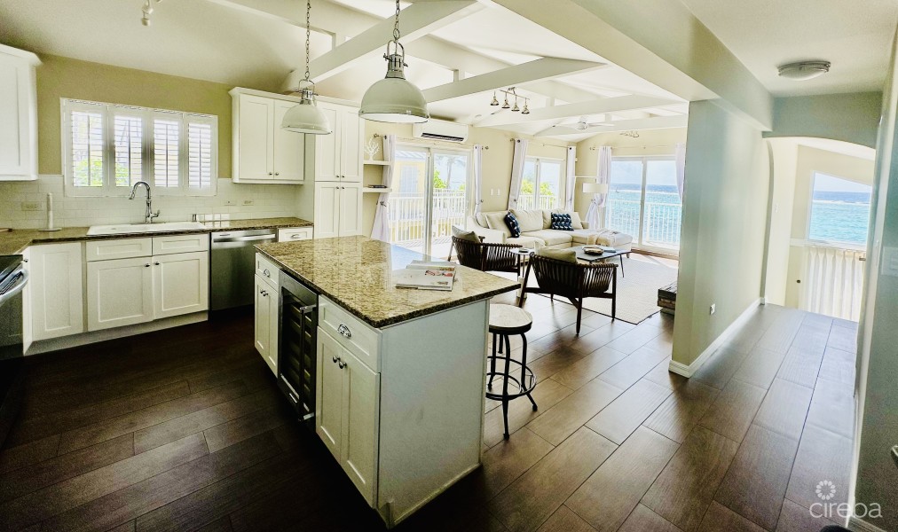 Escape to your own Beachfront Cottage at Caribbean Paradise in South Sound. A stand alone home with expansive deck and exquisite sea views, where you can hear the water as it laps the shore and enjoy the sea breezes. This truly is your Caribbean Paradise come true! This stunning 3-bedroom + office + den, is a multi-level renovated home and perfect for any couple or family. Beachfront living, nestled in a safe, family-friendly neighborhood, offering the ideal blend of luxury, comfort, and charm. This Hawaiian style home with the kitchen, living, dining area, powder room and laundry all upstairs, boasts high ceilings and a bright and airy, white feel. This living space offers seamless beach views, perfect for gathering with loved ones and cozying up to the sound of the waves. Three well-appointed bedrooms and office can be found on the lower level providing a relaxing and cool space to lay your head at night. The kids room includes a nautical theme, complete with a bunkbed and slide. The neighboring room offers a king size bed and garden views with expansive wardrobe space. Both share a full sized bathroom with luxury oversized bath tub and shower. The den can be found on the basement level, where you have fitted storage complete with a Murphy bed for guests and play area or spacious media room, perfect for kids in the family. The Master Bedroom , found on the same level as the other bedrooms, provides a luxurious hideaway with en suite and expansive wardrobe, where you can lay in bed and watch the serene blues of the Caribbean Sea. Large patios doors open onto your very own deck and slice of white sand and sea. This is paradise, surely? This is a rare find in Cayman and will be snapped up very quick, so do not miss your chance to own your slice of Caribbean Paradise!