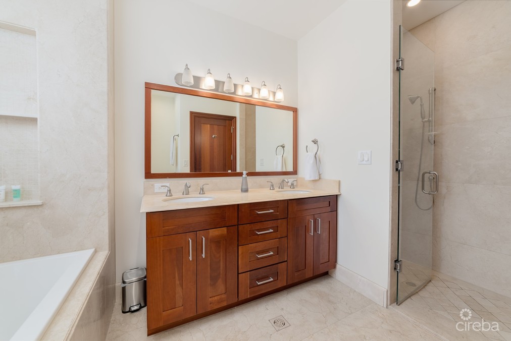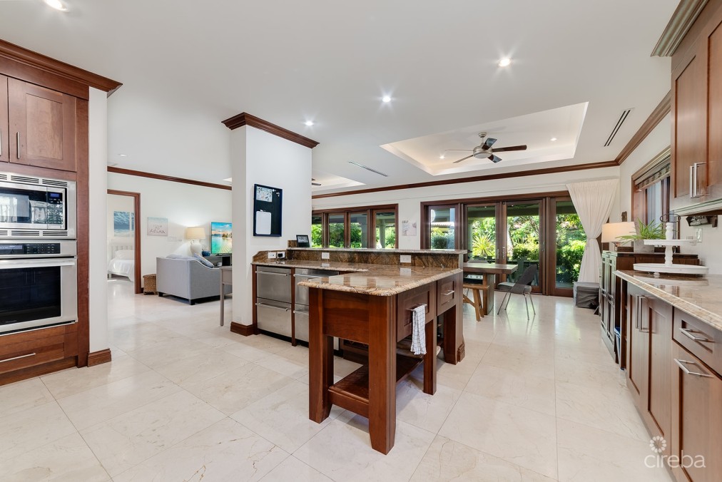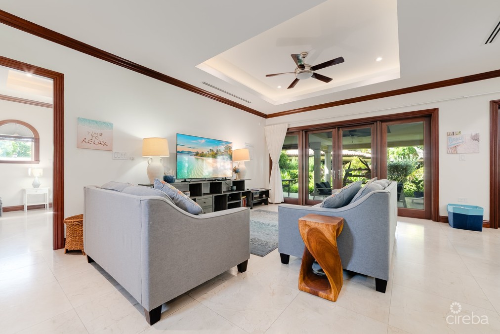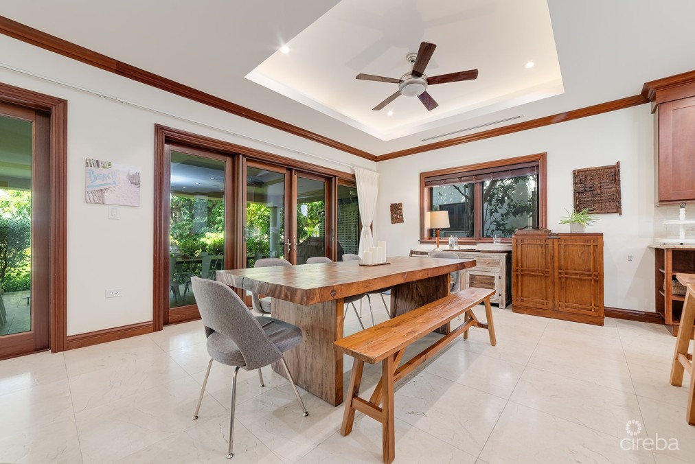 CASA LUNA #9 Tuscan Coastal Villa in Grand Cayman Discover the best of island living at Casa Luna #9 - a stunning 4-bed, 5-bath gated luxury villa tucked inside Grand Cayman's South Sound community. Spanning over 4,200 sq. ft. across three levels, this Tuscan-style home offers resort-style amenities with the privacy of a standalone residence. Enjoy open-concept living with a gourmet kitchen, spacious indoor/outdoor entertaining areas, and high-end finishes throughout—from travertine floors to custom mahogany woodwork. Wizard Screens in the living and dining areas allow you to leave the doors open when the weather is cool, enhancing the seamless flow between indoors and out. Two generous primary suites (one on each level), a private office nook, and a sprawling veranda complete the home’s versatile layout. Set within 4+ acres of lush grounds, you’ll find koi ponds, waterfalls, a fitness center, infinity pool, hot tub, and over 520 ft of private beach - all just minutes from Seven Mile Beach and George Town. Casa Luna #9 is the ultimate private retreat with all the perks of a high-end resort. Monthly costs are subject to change and fluctuation.