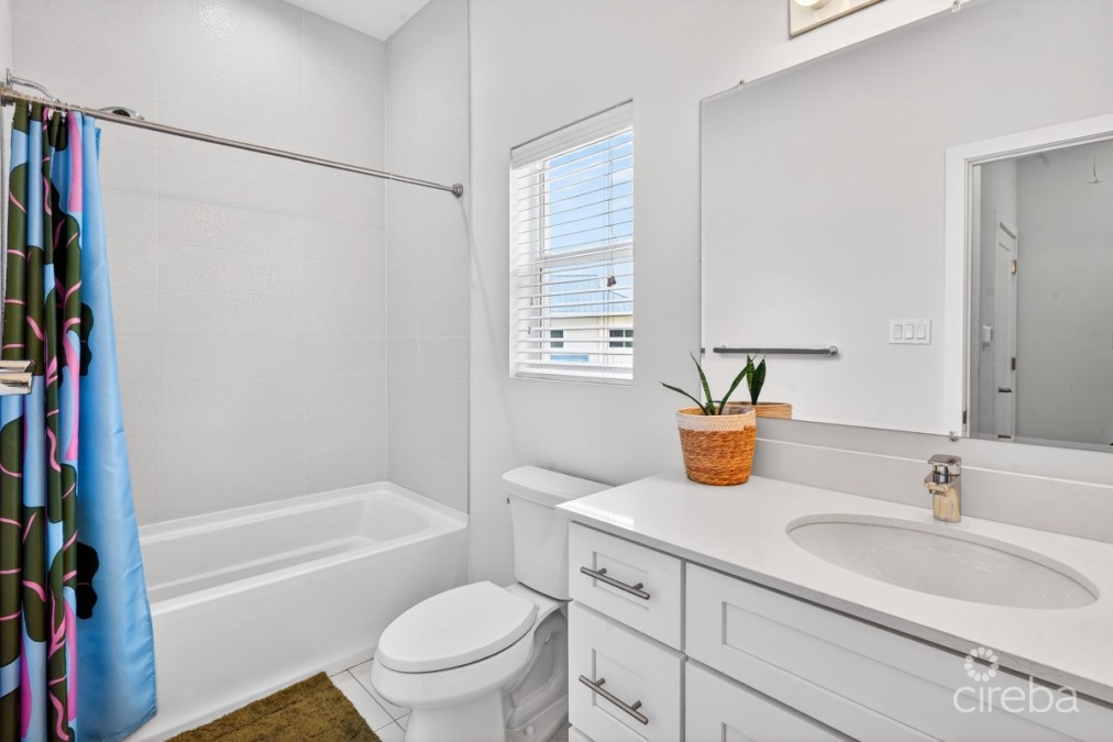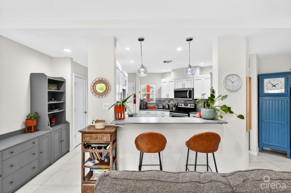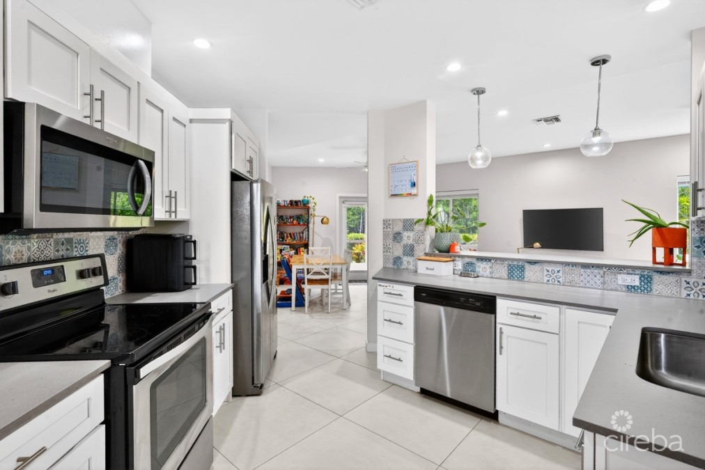 Spacious and modern 2-bedroom, 2.5-bathroom town home in the South Sound community of Cayman Crossing, located directly across from the sea and the South Sound boardwalk. Built in 2019, this open plan two-story unit offers one of the most private settings in the complex, with serene views over lush green space with no rear neighbors. The ground floor features an open-concept layout with a contemporary kitchen flowing seamlessly into the dining and living areas which open onto a screened porch, perfect for relaxing. Upstairs, you’ll find two bright and generous bedrooms along with two full baths and laundry. Perfectly positioned for an active island lifestyle, this home is just steps from the sea, making it ideal for paddle boarding, kayaking, kite surfing, or simply strolling along the beach or relaxing on the sand in the shade of a palm tree while being cooled by the Caribbean breezes. Cayman Crossing is a pet friendly community that offers fantastic amenities, including two swimming pools, a fully equipped gym, the sandy beach across the road with beach chairs for owners and their guests, a bit of green space for the kids to kick a ball or take in the nature and feed the turtles and seabirds who call Cayman Crossing’s lake system their home.