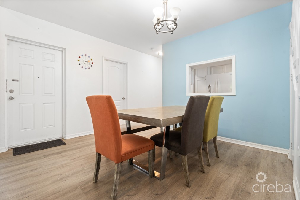 Superb location within a private gated complex on Walkers Road, close to schools, hospitals and GT central. This sort after unit makes for an ideal island home close to George Town with easy access to SMB areas. Master bedroom is ideally positioned on the ground floor level, along with kitchen, utilitiy room, lounge and screened patio and green fenced private garden. Second floor is an open Mezanine (den or office) which can be converted into a 4th bedroom, and then two large bedrooms with an adjoining bathroom. High ceilings throughout and tall windows giving ample natural light. Property has hurricane shutters , under stair storage, attic space. 2 parking spaces. Sold fully furnished. Pets allowed. Short walk to Smiths' Cove beach.