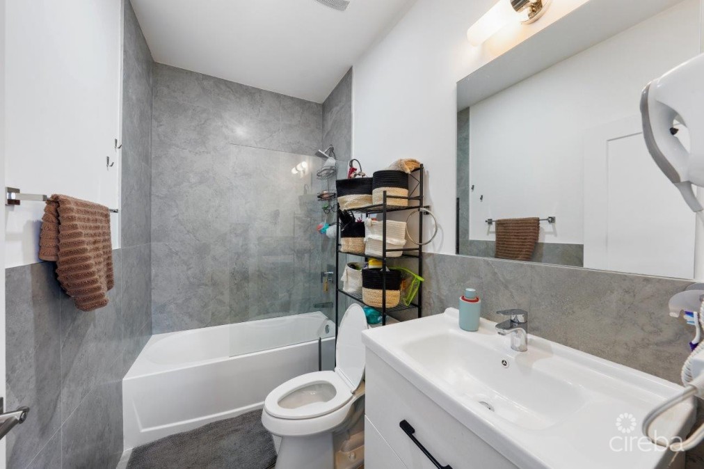 Just steps from South Sound’s beautiful white-sand beaches, The Mantras is a newer gated community that seamlessly blends relaxed island living with modern convenience. Ideally located just minutes from George Town, Harbour Walk, and South Sound’s amenities, it offers both privacy and easy access to everything you need. Designed with today’s families and discerning homeowners in mind, the community features two resort-style swimming pools, a children’s playground, and private outdoor space for every residence—creating a safe, friendly environment with an upscale feel. This stylish two-bedroom, two-bathroom condo is truly move-in ready. Built with solid ICF construction, multi-zone air conditioning, and propane appliances, the home is energy-efficient, quiet, and comfortable year-round. Inside, you’ll appreciate the sleek modern finishes, quartz countertops, contemporary appliances, and a spacious primary suite that serves as a calm private retreat. Whether you’re looking for a refined family home, a lock-and-leave island residence, or a smart investment opportunity, this exceptional property delivers comfort, quality, and lifestyle in one beautiful package.