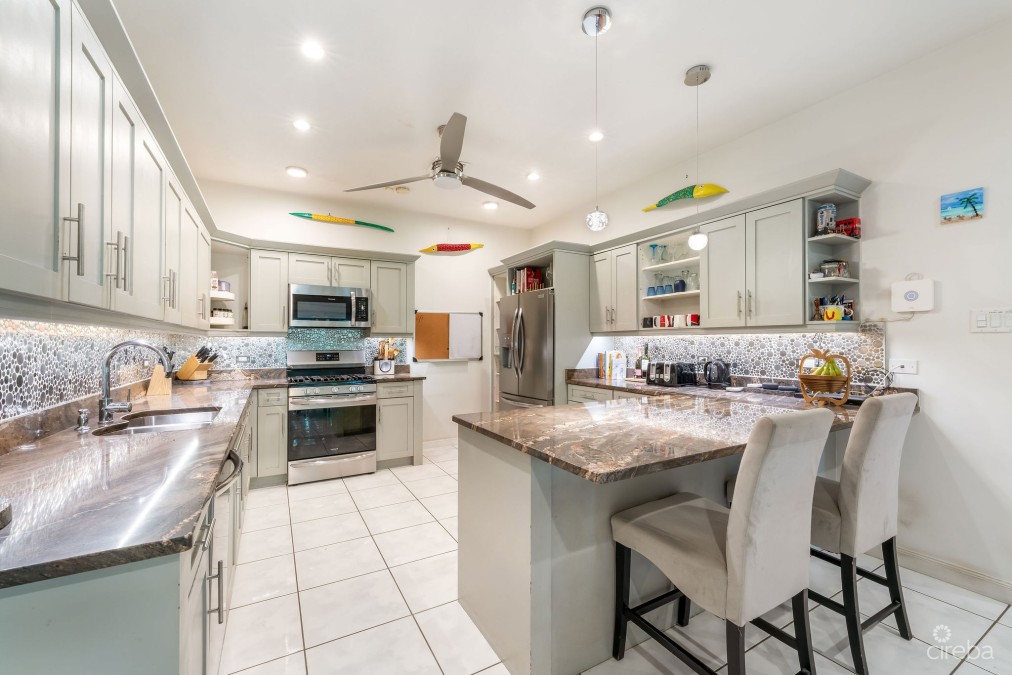 Ideally situated in the South Sound area just off Walkers Road, this beautifully maintained 4-bedroom, 3-bathroom home offers the perfect blend of convenience, comfort, and island charm. Located just minutes from top schools, George Town, and only a short drive to both Seven Mile Beach and Grand Harbour, this property is perfectly positioned for families or professionals seeking easy access to everything. Set on a lushly landscaped 0.25-acre parcel, the 3,600 sq. ft. residence features mature fruit trees including mango, star fruit, avocado, and Jamaican apple—perfect for those who appreciate nature and outdoor living. Recently renovated, this home offers an layout ideal for both relaxing and entertaining indoors and out. Gated, with a garage that has the potential for an additional bonus room, you really have everything you could need in a prime location. Whether you're looking for a primary residence or a savvy investment, this property offers excellent value. Come see for yourself, this home truly must be viewed to be fully appreciated.