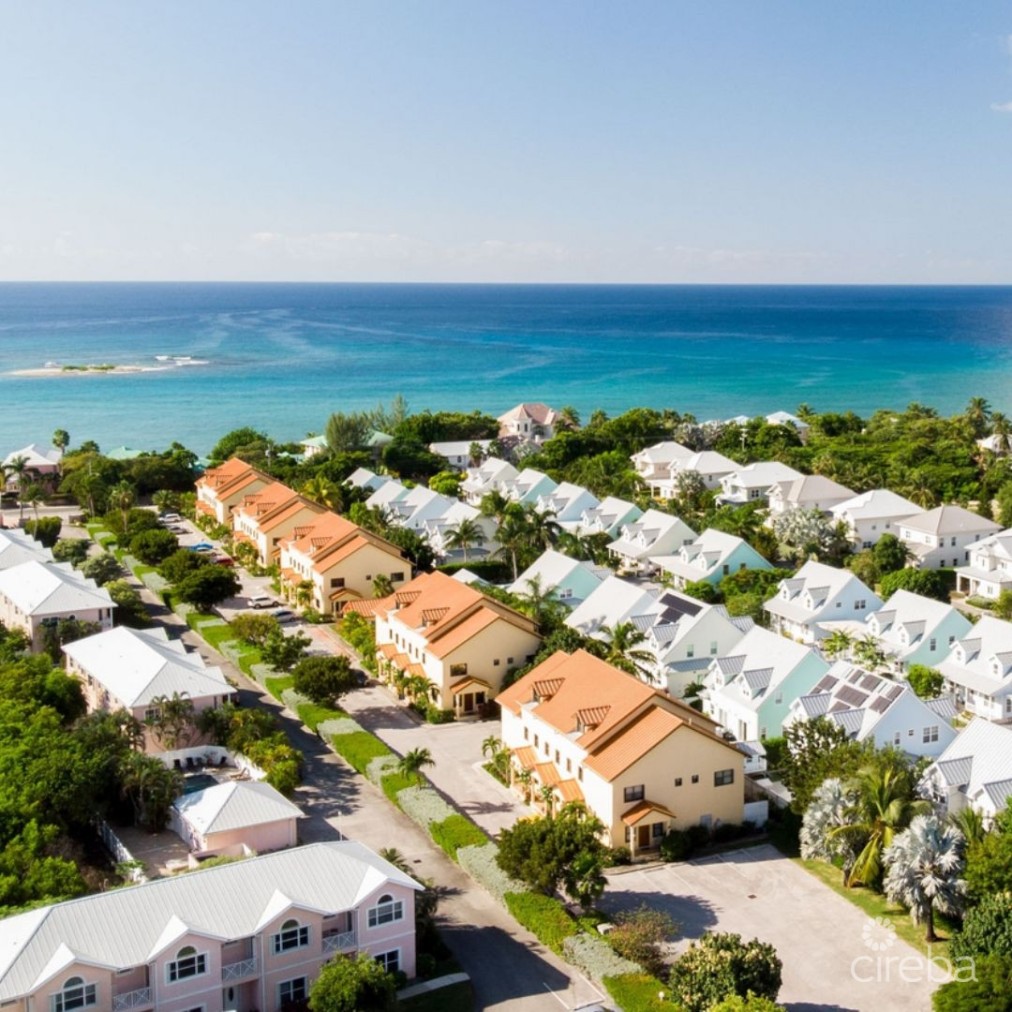 Live at Southern Skies & discover this beautifully positioned corner two-story townhouse nestled in the heart of South Sound, just steps from the pristine beach and only a five-minute drive to George Town. This 2beds/2.5baths spans 1,400 sq. ft., this modern home features an open-plan design with an abundance of light (corner townhouse) & open plan kitchen. The bright interior seamlessly connects to a private shaded patio and lush garden, ideal for outdoor gatherings and relaxation with corner privacy. Upstairs, the primary bedroom boasts an ensuite bathroom and a large walk-in closet, while the guest bedroom offers 12ft pitched ceilings, large windows, an ensuite, and a charming corner balcony, making it suitable for a home office or guest suite. Located in the pet-friendly Southern Skies community, residents enjoy amenities such as a swimming pool and a small gym. This amazing corner townhouse combines modern comfort, style in a prime location — a truly exceptional opportunity. Schedule your private viewing today and make this dream home yours! Priced at CI$595K