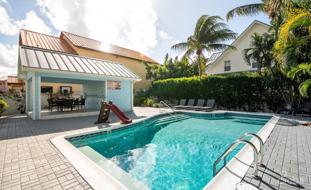 Perfectly positioned in the heart of South Sound, directly opposite the beach, this beautifully presented plantation-style residence delivers relaxed coastal living within one of Cayman’s most desirable pet-friendly communities. From the moment you step inside, the home impresses with soaring ceilings and a bright, open-plan layout that feels both spacious and inviting. The kitchen is thoughtfully designed with granite countertops, a gas stove, and a breakfast bar for casual dining, all complemented by a perfectly placed window overlooking the lush rear garden. Just off the kitchen, the dining area is enhanced by an elegant bay window, allowing soft natural light to pour in and create a warm, welcoming atmosphere. French doors open out to a full-width porch, seamlessly extending the living space outdoors. Beyond, a fully fenced tropical garden offers a private, shaded retreat—ideal for children and pets to enjoy freely. Upstairs, the home has been intelligently reconfigured to maximise space, now offering a fourth bedroom and an additional bathroom—perfect for growing families or guests. The Plantation represents outstanding value in South Sound, combining character, practicality, and a strong sense of community. Residents benefit from a well-maintained environment, shared pool, and reasonable running costs—all just minutes from top schools, shops, and everyday conveniences. A rare opportunity in a prime location—get in touch today to arrange your private viewing.