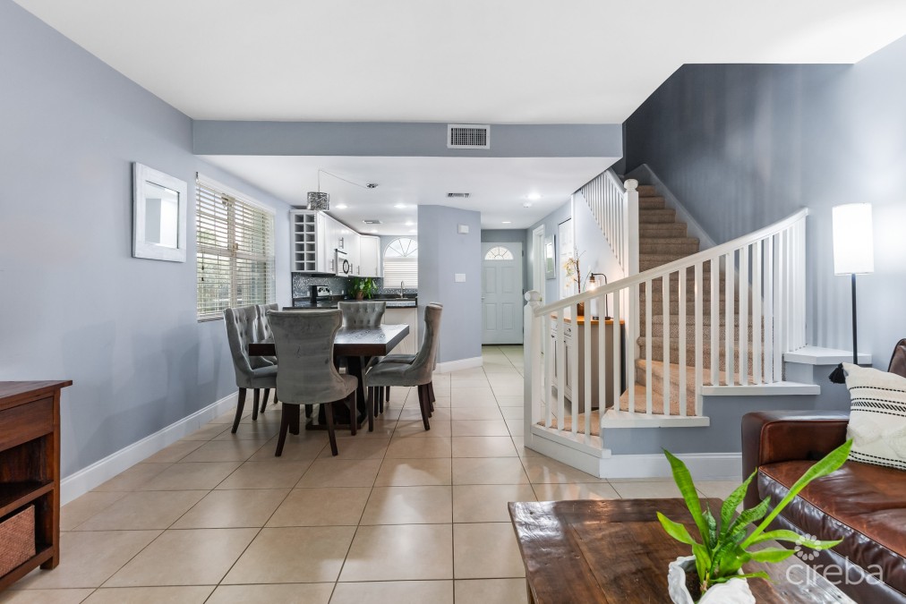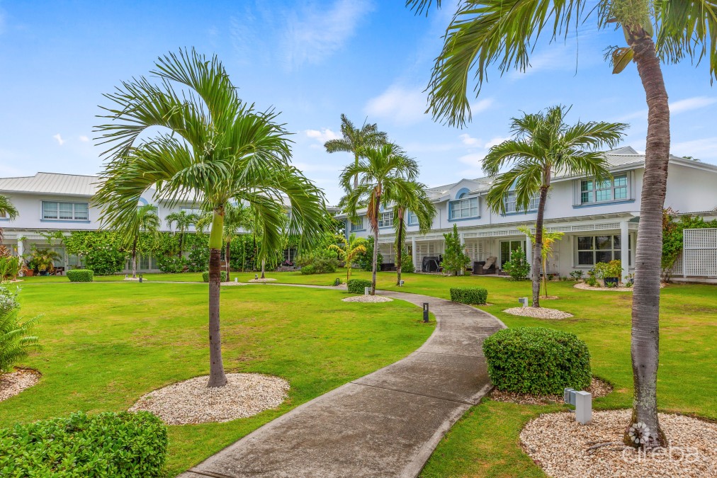 Nestled in the heart of South Sound, just minutes from Surfer's Beach and Smith Cove, Windsor Village is a peaceful, oceanfront community that captures the essence of island living. With its lush tropical landscaping, serene atmosphere, and direct access to the sea, it’s a place where life slows down and nature takes center stage. This charming 2-bedroom, 2.5-bath townhouse is quietly tucked away at the back of the complex, offering added privacy and a sense of calm. As an end unit, it benefits from abundant natural light throughout its 1,504 sq. ft. of well-designed living space. The open-plan ground floor seamlessly connects the living and dining areas to a shaded private patio, where you can unwind amidst greenery and soft sea breezes. It’s a space designed for both comfort and connection to nature. Upstairs, the primary bedroom features a king-sized bed, a bathtub, and lovely ocean views, while the second bedroom offers a newly renovated ensuite shower. Tastefully furnished, this home is ready to welcome families or long-term tenants looking for comfort and style in a peaceful setting. Life at Windsor Village centers around the outdoors. Take a stroll through the tropical gardens, cool off in the beachfront pool, or head straight to the sandy shoreline, where a private dock and cabana invite you to paddleboard, snorkel, or simply relax by the water.With its tranquil surroundings and focus on island living, Windsor Village is a true retreat on the edge of the sea.
