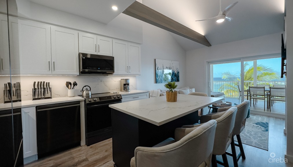 Beachfront Elegance at Coral Bay Village Welcome to Coral Bay Village, a beautifully renovated top-floor beachfront condo on Spotts Beach. This exceptional two-bedroom residence offers unspoiled views of the Caribbean Ocean, where the rhythm of the waves and the coastal breeze set the tone for a relaxed, island-inspired lifestyle. A Premier Beachfront Location Located on the sought-after Spotts Beach, this property is ideal for those who appreciate direct beachfront access and an unfiltered connection to nature. Spotts Beach is known for its tranquil setting, serene waters, and the occasional visit from the island’s famous sea turtles. Whether you enjoy morning walks along the shore, an afternoon swim, or simply soaking in the breathtaking oceanfront sunsets, this residence places you right where you want to be. Fully Renovated, Move-In Ready Step inside to discover a modern, thoughtfully designed interior that perfectly complements the stunning outdoor surroundings. Every inch of this top-floor unit has been meticulously updated, offering a move-in-ready experience. The open-plan living and dining area is bathed in natural light, with large windows framing the uninterrupted Caribbean Sea views. High-end finishes, stylish fixtures, and a contemporary coastal aesthetic make this condo feel like a private retreat. The updated kitchen is both beautiful and functional, featuring sleek cabinetry, quartz countertops, and stainless steel appliances. Whether you're preparing a meal or entertaining guests, the space is designed for both ease and elegance. Spacious Bedrooms with Ocean Breezes Both bedrooms provide a peaceful sanctuary, with ample closet space and large windows to invite in the gentle sea breeze. Wake up to ocean views from the primary bedroom and fall asleep to the sound of the waves each night. The renovated bathrooms are finished with modern fittings, offering a spa-like experience. Your Oceanfront Lifestyle Starts Here Coral Bay Village is a well-maintained beachfront community, offering residents private beach access, lush landscaping, and a relaxed coastal atmosphere. With close proximity to George Town and key amenities, this property is perfect as a full-time residence, vacation home, or investment opportunity. How do you want to live your life? Schedule a private viewing today and experience beachfront living at its finest.