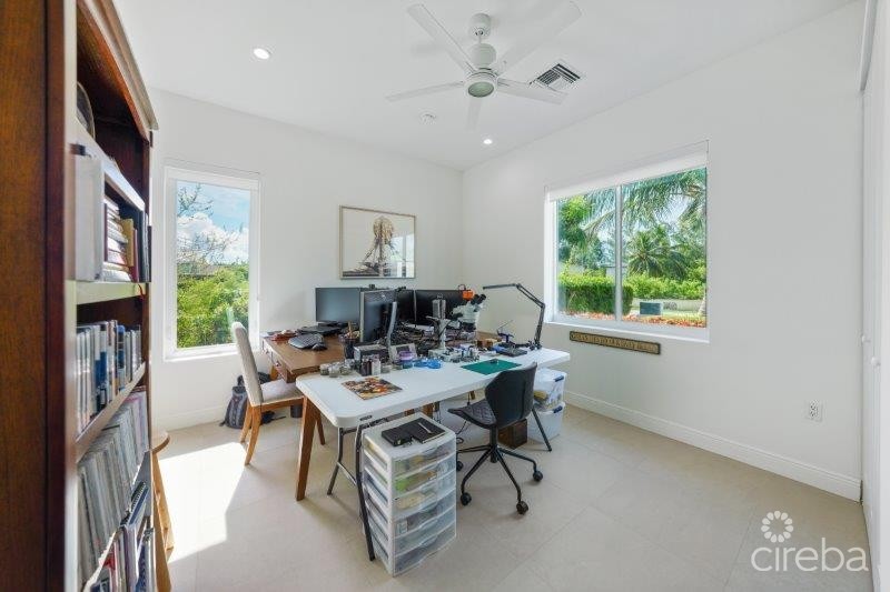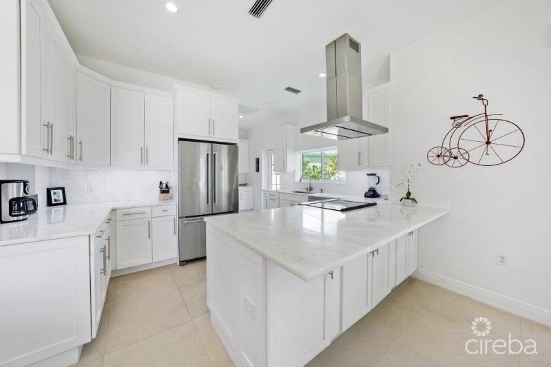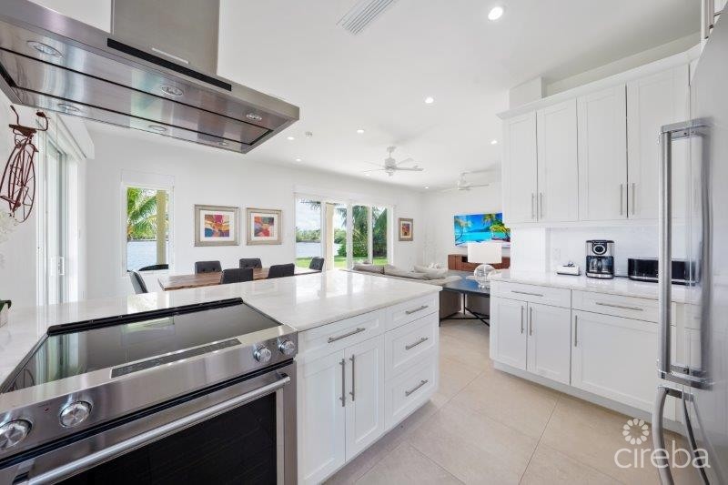 Welcome to the New Patrick’s Island… Now a Gated Community. Live the life you love... Gorgeous views across the Canal Basin from the 1st Floor Covered Porch and the 2nd Floor Covered Balcony. So easy to RELAX! Enjoy the 30 ft Boat Dock with Water and Electric Service. Just a short voyage to the North Sound for Fishing, Diving, Stingray City and Restaurants. Convenient Location close to Shopping and Restaurants at Grand Harbour, as well as in the Countryside! This unique Floor Plan suits many Lifestyles… The Main House features 3 Bedrooms, 3 Bathrooms, a kitchen, Dining Room, Family Room, Laundry Room, Covered Porch, Covered Balcony, and a large storage room, spanning 2,934 sq ft. The Guest House features 1 Bedroom, 1 Bathroom, plus a Kitchen, Dining Area, Living Room, Pantry, and Coved Porch, and measures 818 sq ft. The spacious 3-car garage with an additional Storage Room is 938 sq ft. Special Features include: Newer Modern Design - Light and Bright! White Shaker Style Cabinets with SS Hardware Walk-In / Walk-Out Glass-Enclosed Showers Cook’s Delight Kitchen with KitchenAid Appliances ICF Construction and the 2nd floor is concrete Spray Foam Insulated Attics 4 Separate A/C Units Standing Seam Metal Roof Security System Hurricane Impact Windows and SG Doors Stack Washer & Dryer with a separate room Laundry Cabinets with Laundry Sink 3 Flat Screen Wall Mount TVs LED Recessed Lights Energy Efficient Ceiling Fans Porcelain Tile Floors 10 ft Ceilings Throughout 8 ft Solid Core Single Panel Doors Huge Primary walk-in Shower with Separate Soaking Tub Kohler Sinks and Toilets Grohe SS Plumbing Fixtures 2 Tankless Hot Water Heaters Decorative Glass Front Entry Door Roller Blinds and Solar Shades Wide Winding Staircase Built-in Bookcases on 2nd floor landing Lots of PGP Tilt-out Windows 3 Automatic Garage Door Openers with Key Pad Entry 3 Exterior Hose Bibs Lawn Sprinkler System with Automatic Timer Extra Large Paver Driveway Travertine Walkways and Porches Composite Deck on Boat Dock Plumbing for 1/2 Bath in Storage Room Plenty of Space and access to the pool - plans available! Agent Owned
