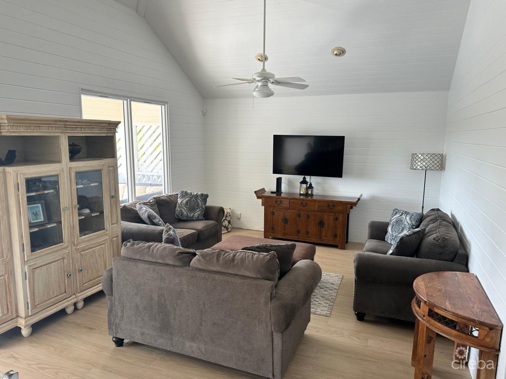 Renovated canal-front 4BR/3BA waterfront villa in charming West Bay offering 2,731 sq. ft. in a private 3-home community at the end of Uncle Bob Rd. Bright coastal interior with open-concept living and great indoor/outdoor flow—ideal as a full-time family home or a flexible investment for short-term vacation or long-term rental. Boater’s dream: canal sits at the mouth of the North Sound with quick access to Rum Point, Starfish Point & Stingray City, plus reinforced concrete seawall and dock service pedestals. Minutes to Calypso Grill and Tukka West.