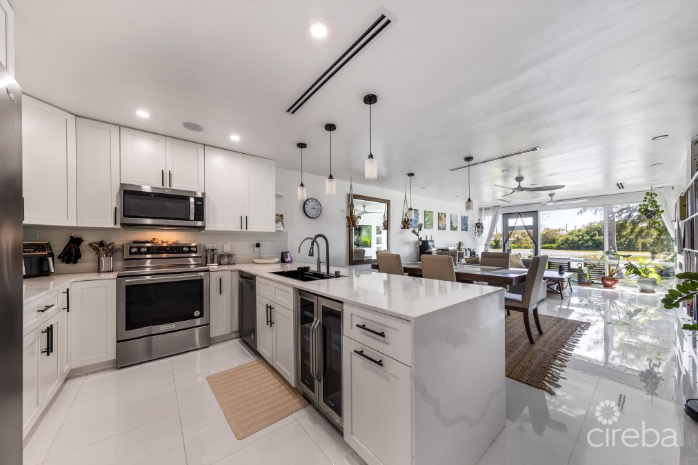 Well-appointed and fully upgraded 2-bedroom plus den, 3-bathroom residence located in West Bay, offering attractive lake views and access to excellent onsite amenities including a pool and gym. This spacious unit features a versatile den currently configured as a home theatre, complete with integrated surround sound. In addition, in-ceiling speakers are installed in both bedrooms as well as the kitchen and living area, creating a seamless audio experience throughout the home. The property has been extensively upgraded with LED lighting, Lutron dimmer systems, and dual air-conditioning units on both levels, helping to maintain efficient cooling and keep CUC costs to a minimum. The modern kitchen is fitted with recently updated appliances (approximately 12 months old), along with a wine fridge and European hot water tap, providing both functionality and style. This turnkey property is ideal for owner-occupiers or investors seeking a well-maintained home in a desirable West Bay location.