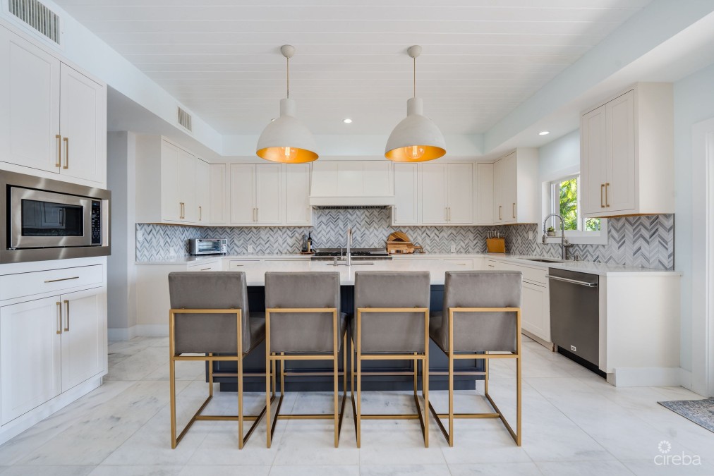 Experience elevated waterfront living in this fully renovated 4-bedroom, 4-bathroom home with a den, located in the prestigious gated community of The Shores in West Bay. Offering approximately 4,200 sq. ft. of beautifully updated living space, this residence blends modern comfort with effortless island style. Thoughtfully renovated throughout, the home features contemporary finishes, upgraded fixtures, and smart-home enhancements designed for both convenience and everyday comfort. The den provides a versatile bonus area—ideal as a home office, reading nook, or hobby space. The home has been meticulously maintained by its owners and is being offered fully furnished, allowing for an easy and seamless move-in experience. Mature, lush tropical landscaping surrounds the property, creating a quiet, private, and inviting outdoor environment. Situated directly on the canal, the home includes its own dock, offering quick access to the North Sound—perfect for those who enjoy life on the water. A fantastic opportunity to own a turnkey, fully renovated canal front home in one of West Bay’s most desirable communities, ready for you to step in and enjoy the best of island living.
