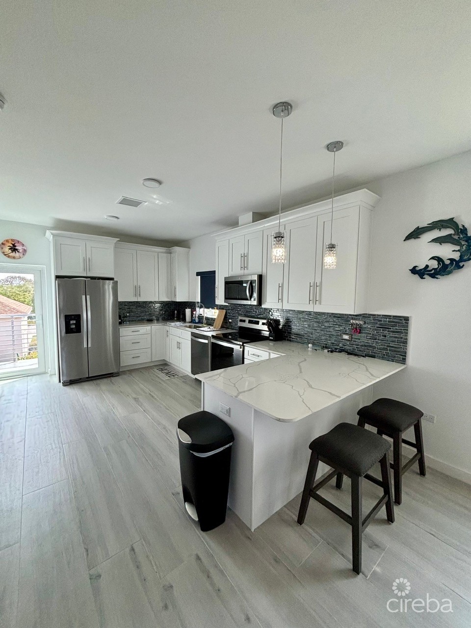 Discover Your Private Oasis at La Paidion, West Bay Luxury Island Living Just Minutes from Seven Mile Beach Welcome to La Paidion—a refined blend of upscale design and relaxed Caribbean charm. This beautifully appointed 2-bedroom, 2-bathroom townhome offers 1,441 sq ft of thoughtfully designed living space, ideal for those who value both elegance and comfort. Modern upgrades include dimmer lighting, a sofa bed in the living room, a trundle bed in the guest suite, and a full Yamaha MusicCast sound system paired with three large TVs. Cordless blackout blinds throughout provide seamless privacy and comfort. What Makes This Home Exceptional • Elegant Owner’s Suite Wake to the island breeze on your private balcony. Relax in a spa-inspired en-suite bathroom and enjoy the convenience of an oversized walk-in closet. • Sleek, Contemporary Design An open-concept layout, high-end finishes, and clean architectural lines make this space as functional as it is photogenic. • Smart, Sustainable Living Energy-efficient stainless steel appliances and solid foam exterior siding keep your home cool and your utility costs low. Exclusive Resident Amenities Gated entry for enhanced privacy and peace of mind Resort-style pool perfect for relaxing after a beach day Stylish clubhouse and rooftop lounge—ideal for entertaining or evening cocktails Fully equipped fitness center to help you meet your wellness goals Prime Location, Unmatched Convenience Nestled in a quiet, secure enclave in West Bay, La Paidion is perfectly positioned: 5 minutes from world-famous Seven Mile Beach Close to upscale restaurants, vibrant nightlife, and premium shopping Easy access to Georgetown, Camana Bay, and major roadways Your Island Escape Awaits, La Paidion combines modern luxury, serene surroundings, and effortless convenience in one exclusive address. Schedule your private tour today and take the first step toward the island lifestyle you’ve always envisioned.