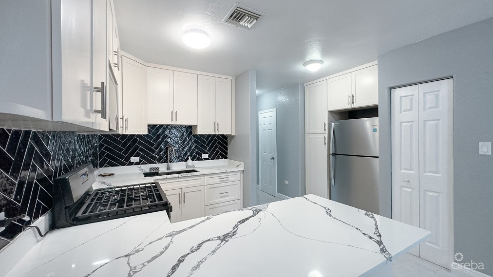 Newly Renovated 2-Bedroom Townhouse in West Bay – Move-In Ready with Low Strata Fees! Stylish, Spacious & Convenient Living Welcome to Mizpah, a beautifully renovated, fully furnished 2-bedroom, 2.5-bathroom townhouse in a quiet West Bay neighborhood near The Shores. With 1,387 sq. ft. of modern living space, this townhouse offers the perfect balance of comfort, style, and convenience. It is just 10 minutes from Seven Mile Beach and Camana Bay’s top dining and entertainment. The low strata fees make this an excellent investment or long-term home. Modern Interiors Step inside and be greeted by an open-concept living and dining area designed for effortless entertainment and relaxation. The brand-new kitchen boasts sleek cabinetry, quartz countertops, and a striking black herringbone backsplash, complemented by gas appliances for efficient cooking. High ceilings and large-format tile flooring enhance the home’s spacious and airy feel. The sizeable primary suite is a serene retreat with a large closet, double vanity, and stylish fixtures. A separate laundry room with a full-size washer and dryer adds to the home’s functionality, making daily living even more convenient. Outdoor Space, Low Strata Fees & Prime Location Enjoy outdoor living in your private patio area, perfect for unwinding after a long day. This townhouse is located in a quiet, residential enclave of West Bay, offering peace and privacy while still being close to world-class beaches, fine dining, and vibrant entertainment. With low strata fees, this townhouse provides exceptional value in one of Grand Cayman’s most desirable locations. Why You’ll Love This Townhouse - Recently renovated & move-in ready - Fully furnished for effortless living - Gas appliances & high ceilings - Spacious 2 bed / 2.5 bath layout - Located near The Shores in West Bay - Just 10 minutes from Seven Mile Beach & Camana Bay - Low strata fees – affordable, hassle-free living - Mizpah residents can use the brand-new pool in Phase 2 - Pet Friendly Call us today to schedule a private viewing and make this stunning townhouse your new home. How do you want to live your life?