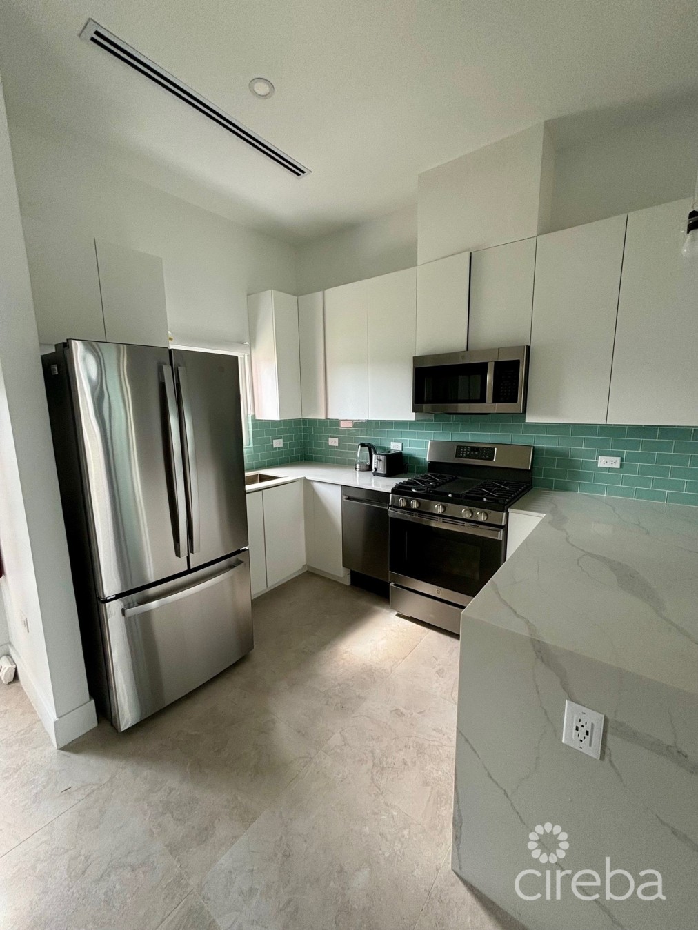 The Sea Grape unit at The Meadows in West Bay, Grand Cayman, is a thoughtfully designed 700-square-foot townhome. The complex itself has to be seen to be appreciated. Phase One is now complete and a thriving community of residents are living in the properties this listed unit is in Phase Two and due for completion in July 2026. Layout: One bedroom, one bathroom, a fully fitted compact kitchen with stainless steel appliances, and a laundry closet with washing machine & tumble dryer. Living Space: The master bedroom overlooks a private patio, accessible via French doors from the living area, which is in prime position between the pool and the lake in Phase Two. Community Amenities: Residents have access to two swimming pools, a fully equipped gymnasium, and two clubhouses with a games room and recreational areas. The Meadows at Batabano is a 113-home residential development located at the end of the Esterly Tibbetts highway on Batabano Road in West Bay. Built by Edgewater Development who have over 20 years building both luxury homes and commercial and residential property in the Cayman Islands.