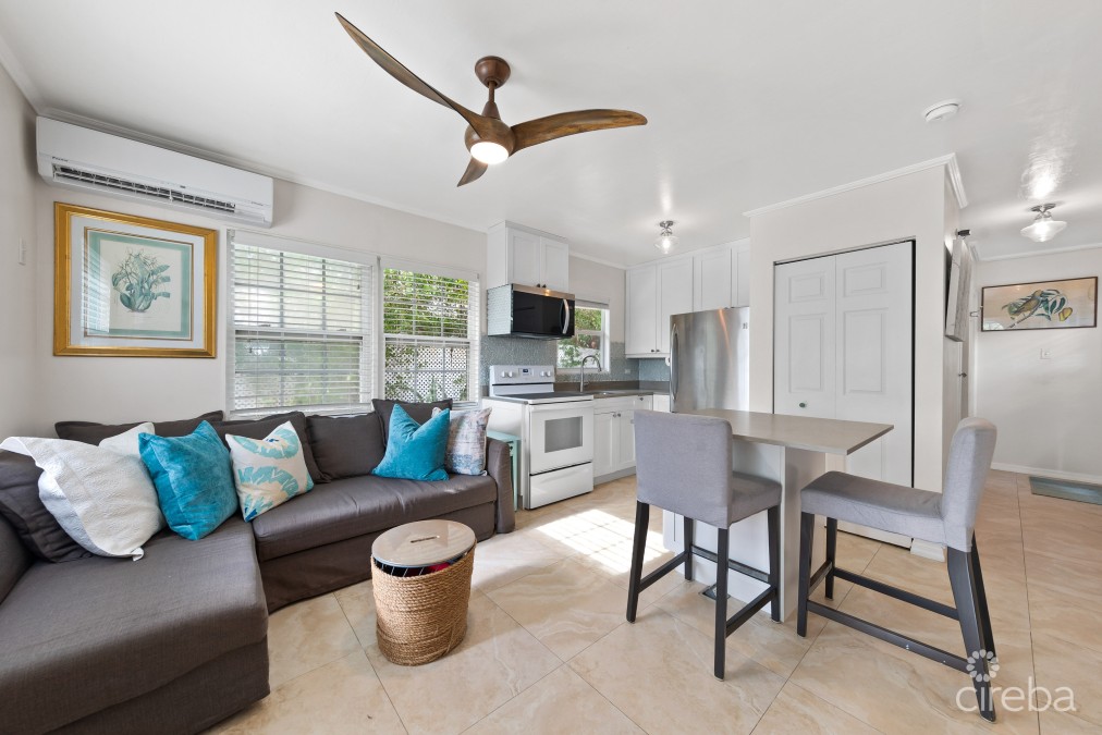 A rare opportunity to own a truly inviting Caribbean-style duplex in a peaceful, sought-after enclave just off Conch Point Road. Set on a 0.2667-acre corner lot, this well-cared-for property offers the perfect blend of island charm, comfort, and income potential. The three-bedroom, three-bathroom main residence is designed for relaxed living. An open-concept living and dining area creates a natural gathering space filled with light and welcoming energy. Soft Caribbean tones, thoughtful finishes, and subtle architectural details give the home warmth and personality throughout. Two bedrooms feature ensuite bathrooms, while the third is currently styled as a home office. A third full bathroom is conveniently positioned for guests. The separate one-bedroom apartment offers a well-designed layout that has consistently attracted tenants, providing immediate income potential and flexibility. Covered front and rear porches extend the living space outdoors, inviting you to enjoy morning coffee, evening breezes, and easy entertaining surrounded by mature tropical landscaping. These outdoor areas create a private, tranquil setting that truly captures the essence of island living. Live in one residence and rent the other, explore short-term rental opportunities, or consider future expansion possibilities. Located near beloved local dining spots and the famous kite-surfing beach at Barkers, this property offers not just a home, but a touch of authentic Caribbean charm.