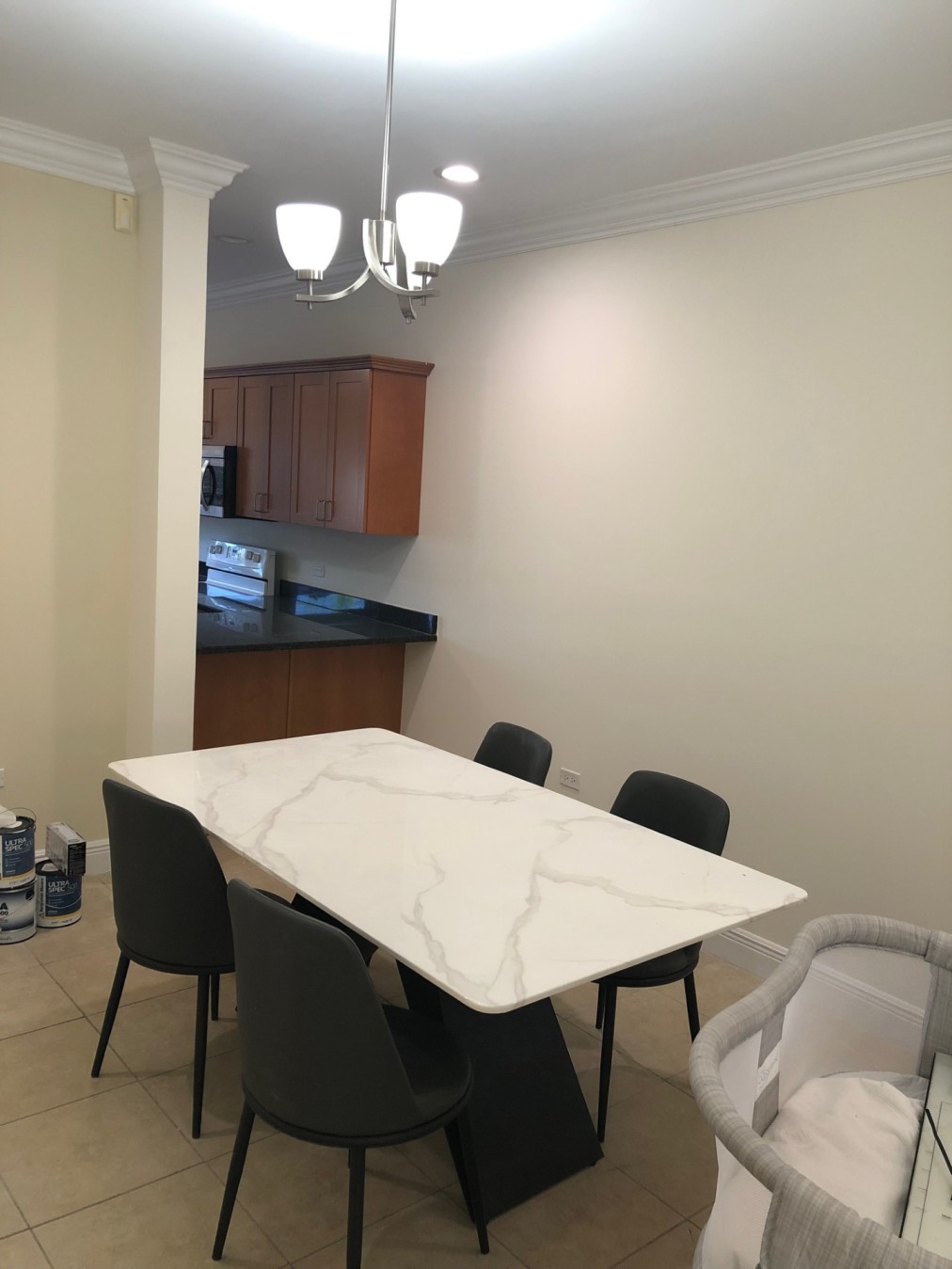 This beautifully refurbished unit features 2 bedrooms and 2.5 baths, designed with a spacious open-plan layout and raised 11-foot ceilings that enhance natural light and airflow throughout. The modern kitchen includes wooden cabinetry and granite countertops, flowing seamlessly into the living and dining areas—perfect for relaxed island living.